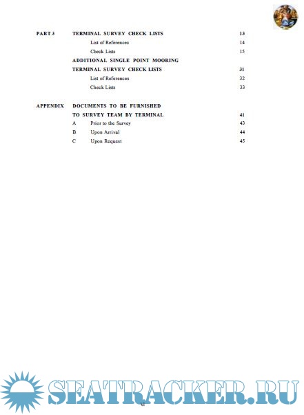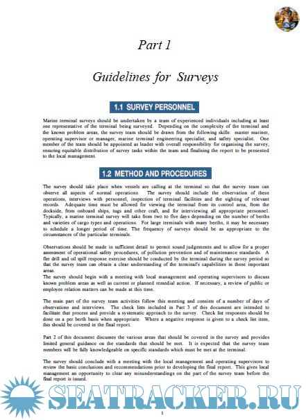 Year: 1995 Language: english Author: OCIMF Genre: Guide Publisher: Witherby & Co. Ltd. Edition: 2nd ISBN: 1 85609 062 3 Format: PDF Quality: OCR with errors Pages count: 47 Description: This second edition of the Marine Terminal Survey Guidelines* has been published by the Oil Companies International Marine Forum (OCIMF), which acknowledges the assistance of the Society of International Gas Tanker and Terminal Operators (SIGTTO), to encourage the assessment of standards of safety and environmental protection at chemical, gas, and oil terminals on a world-wide basis.