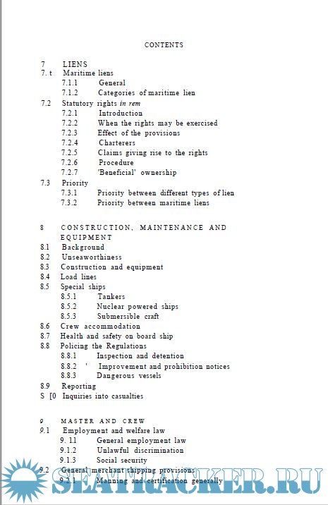 Year: 1996 Language: english Author: NJJ Gaskell, C Debattista & RJ SWatton Genre: Textbook Publisher: Pitman Publishing Edition: 8th ISBN: 0-273-02194-X Format: PDF Quality: Scanned pages Pages count: 751 Description: Chorley and Giles' Shipping Law was originally written as a general elementary textbook with the student of commerce in mind rather than the professional legal student. Four decades later, the book is established as a standard work used by teachers in universities and polutechnics by practitioners in the City of London and other commercial centres and by students of maritime law around the world. This eighth edition is the first for which the late Lord Chorley and OC Giles are not directly responsible. Their individual imprint, however, survives on the pages of the work, now invigorated by the input of three writers from the University of Southampton. The text has been updated to take account of new statutes, case-law and trade practices. There has also been a condsiderable restructuring of the work, the more clearly to explain what has become a large and complex area of the law. The text of this edition refers to over 50 new statutes and several hundred new statutory instruments and cases.