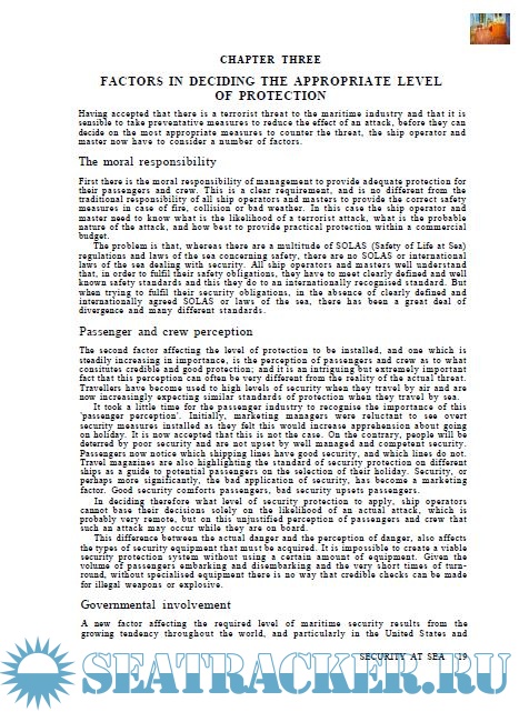 So with security, there are ways of assessing threat and using the ship's resources to best advantage. The great value of this practical book is that it demonstrates what can be done. It is therefore invaluable to ship managers and seamen whose lives, heaven forbid, may depend on the good advice it gives.