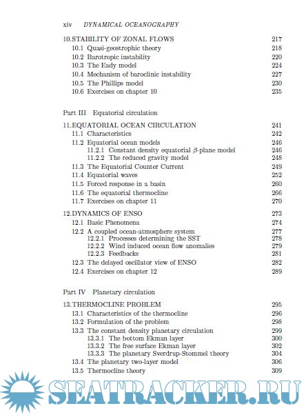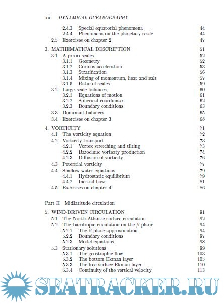 Year: 2008 Language: english Author: Henk A. Dijkstra Genre: Textbook Publisher: Springer ISBN: 978-3-540-76375-8 Format: PDF Quality: eBook Pages count: 408 Description: This text provides an introduction to the theory of the large-scale ocean circulation. There are excellent textbooks on physical oceanography (Pond and Pickard, 1983; OU-staff, 1989; Pickard and Emery, 1990; Tomczak and Godfrey, 1994; Pedlosky, 1996; Knaus, 1997), and geophysical fluid dynamics (Pedlosky, 1987; Cushman-Roisin, 1994; Salmon, 1998; Pedlosky, 2003; Mc Williams, 2006; Vallis, 2006). However, for a typical course where one wants to focus on the ocean circulation only at a challenging level for physics and mathematics students, a combination of material from these books is needed. This text is an attempt into this direction which has resulted in a book on a level between Pond and Pickard (1983) and Pedlosky (1996) with much basic material from Pedlosky (1987).