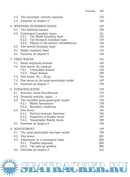 1983; OU-staff, 1989; Pickard and Emery, 1990; Tomczak and Godfrey, 1994; Pedlosky, 1996; Knaus, 1997), and geophysical fluid dynamics (Pedlosky, 1987; Cushman-Roisin, 1994; Salmon, 1998; Pedlosky, 2003; Mc Williams, 2006; Vallis, 2006). However, for a typical course where one wants to focus on the ocean circulation only at a challenging level for physics and mathematics students, a combination of material from these books is needed. This text is an attempt into this direction which has resulted in a book on a level between Pond and Pickard (1983) and Pedlosky (1996) with much basic material from Pedlosky (1987).