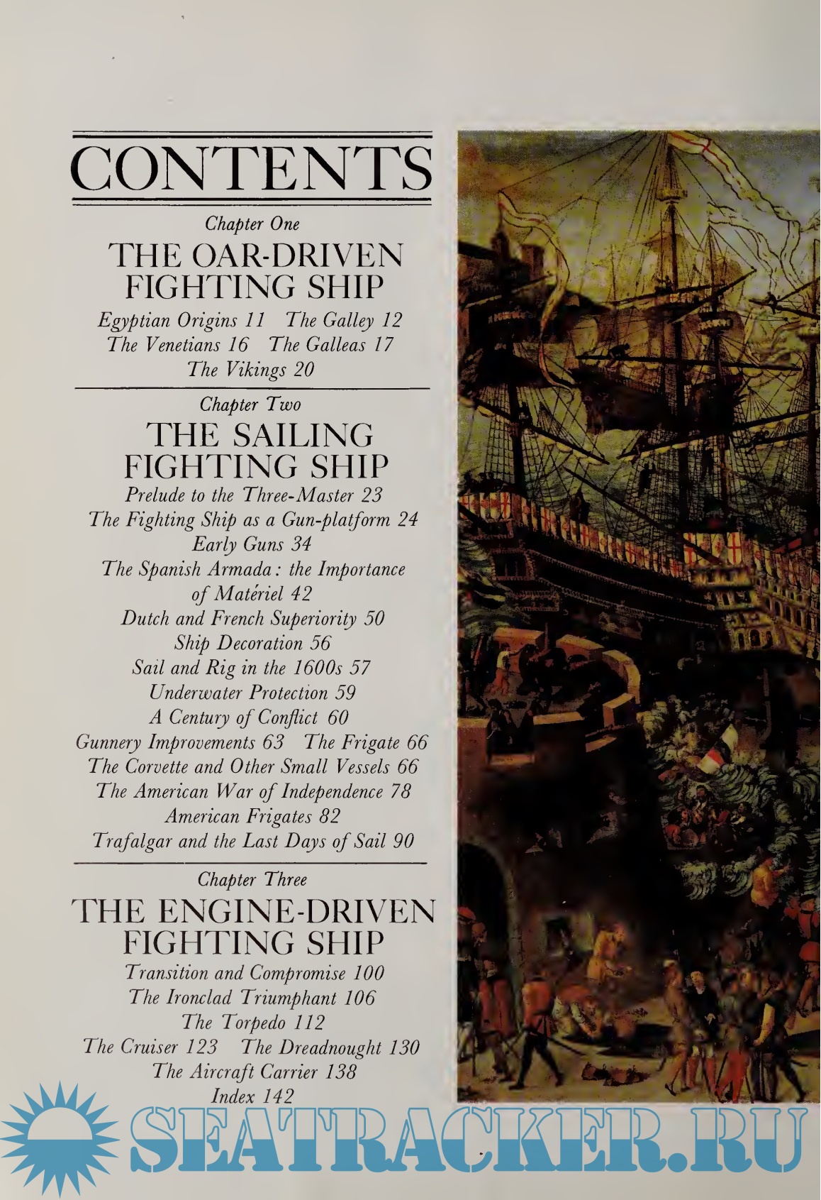Description: A history of the fighting ship from its early origins in the Nile craft of 300 BC to the modern American aircraft carrier.