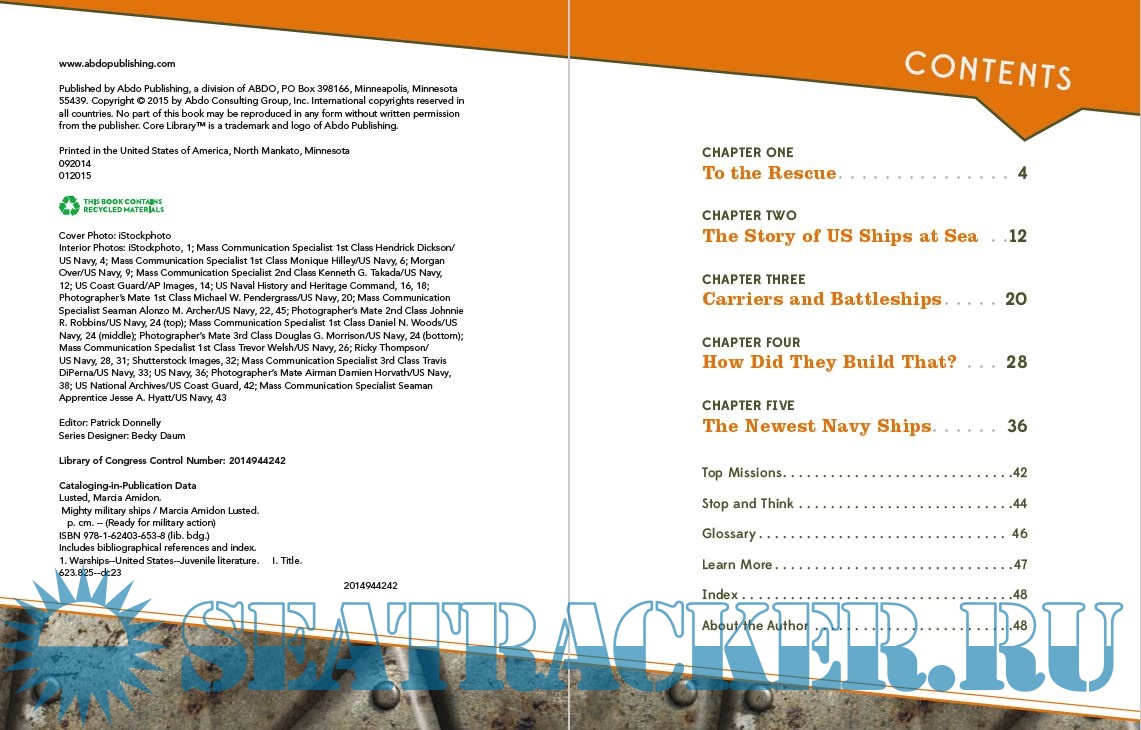 Year: 2015 Language: english Author: Marcia Amidon Lusted Publisher: Abdo Publishing ISBN: 978-1-62403-653-8 Format: PDF Quality: eBook Pages count: 51 Description: Packed with exciting facts and important aspects on military ships, this title also provides historical context, compelling photos, primary source quotations, and critical thinking activities. The title also includes a glossary, web links, and additional resources. Core Library is an imprint of Abdo Publishing Company.