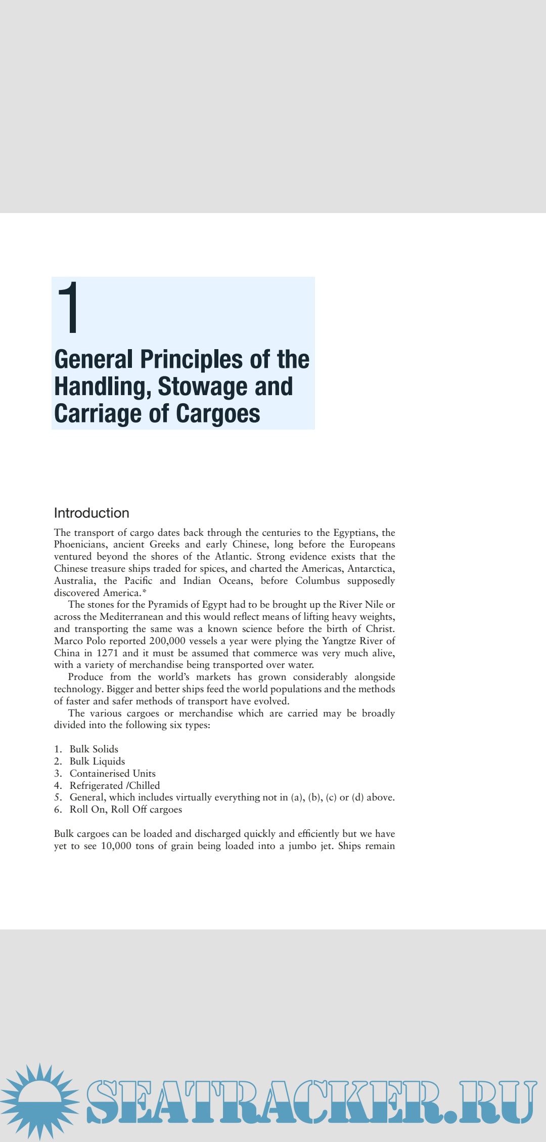cargo work, including cargo types, coverage of roll on, roll off systems, containerisation,