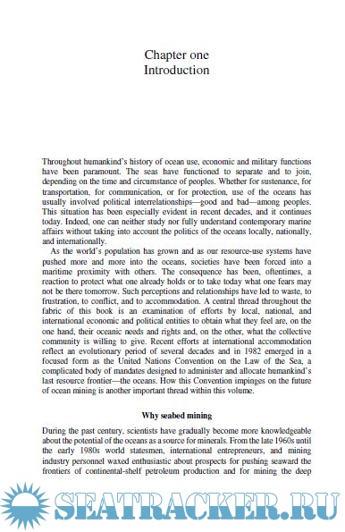 Year: 2005 Language: english Author: Fillmore C.F. Earney Publisher: Routledge ISBN: 0-415-02255-X Format: PDF Quality: eBook Pages count: 434 Description: I began this book in 1985, the ‘Year of the Ocean’. The book’s objectives parallel those identified by John Byrne, a former Director of the United States National Oceanic and Atmospheric Administration, when the Reagan Administration proclaimed 1985 as a year for each of us to focus on the ocean’s importance. Thus, in the broadest sense, I seek to: 1. increase awareness of the ocean’s significance; 2. demonstrate the complexities we face in using its resources; 3. encourage better relationships among the general public, those in industry and governmental agencies that may help to improve ocean resource management; 4. enhance our sense of stewardship of the ocean’s present and potential resources.