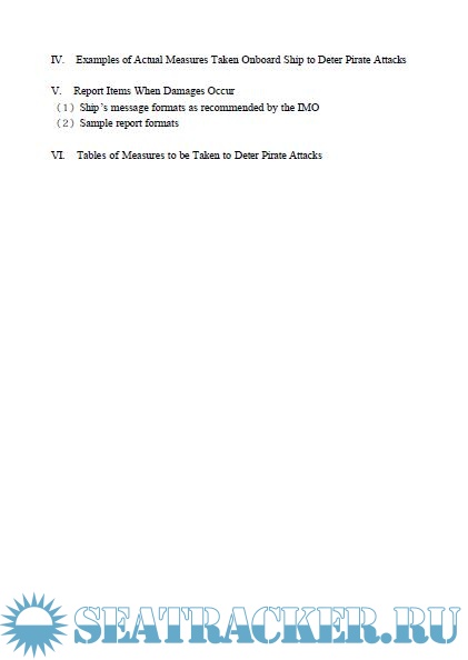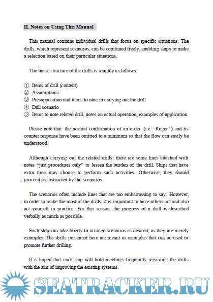 onboard anti-piracy. Also it is aimed that the parties concerned to be thoroughly aware of what should be done. This manual is written in conversation form based on scenarios considering various situations such as finding a suspicious boat, excluding intruders by discharging water, etc, being under control by armed pirates, and is shown in Japanese-English.