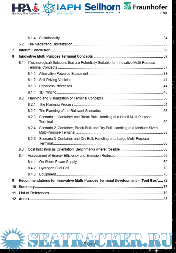 Year: 2017 Language: english Author: IAPH HAMBURG Genre: Research papers Publisher: Hamburg Port Authority Edition: 1 Format: PDF Quality: eBook Pages count: 84 Description: Goal and Course of the Study The overall objective of this study is to identify optimization potentials for the restructuring of existing (brownfield) multi-purpose terminals or the planning and construction of new (greenfield) multipurpose terminals and to provide recommendations for the improvement of multi-purpose terminals considering efficient use of financial and natural resources. To achieve this overall objective, the work is carried out in two consecutive steps. Additional info: Even though not typically interesting for officers/engineers - reading this high quality paper will give you "the background" of how port is organized. It will broaden your overall knowledge of arrival to port.
