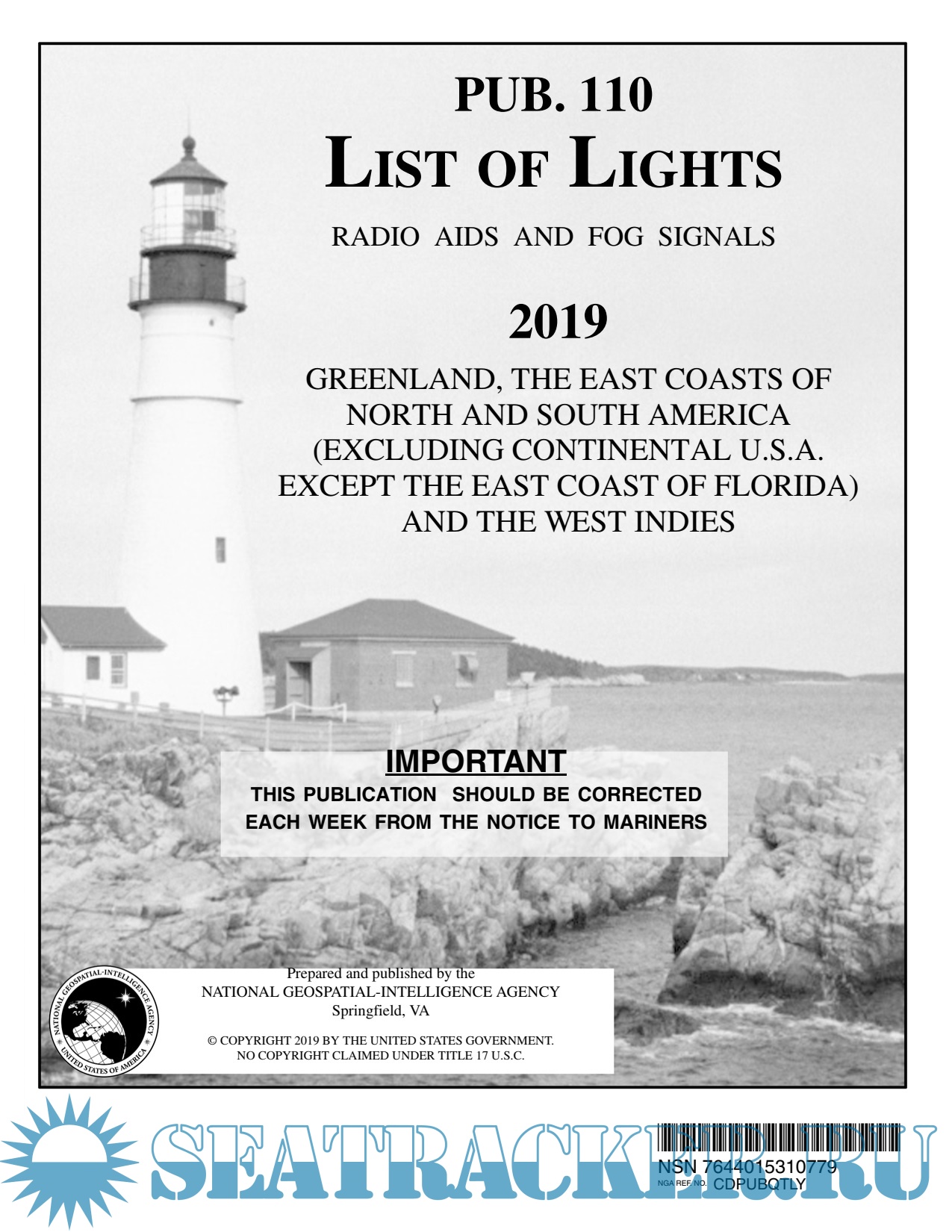 Description: The 2019 edition of Pub.110, List of Lights, Radio Aids and Fog Signals for Greenland, the East Coasts of North and South America (excluding Continental U.S.A. except the East Coast of Florida), and the West Indies, cancels the previous edition of Pub.110.