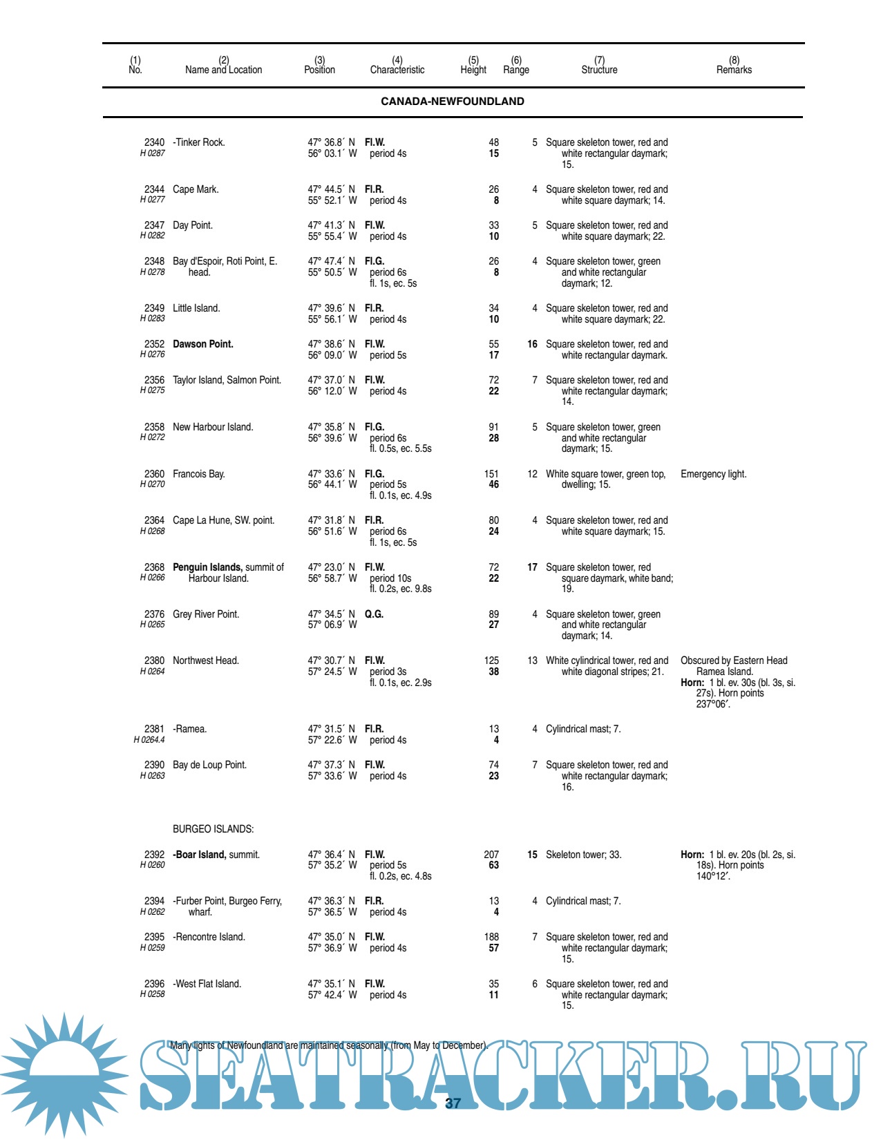 Pub.110 List of Lights, Radio Aids and Fog Signals for Greenland, the East Coasts of North and South America (excluding Continental USA except the East Coast of Florida), and the West Indies