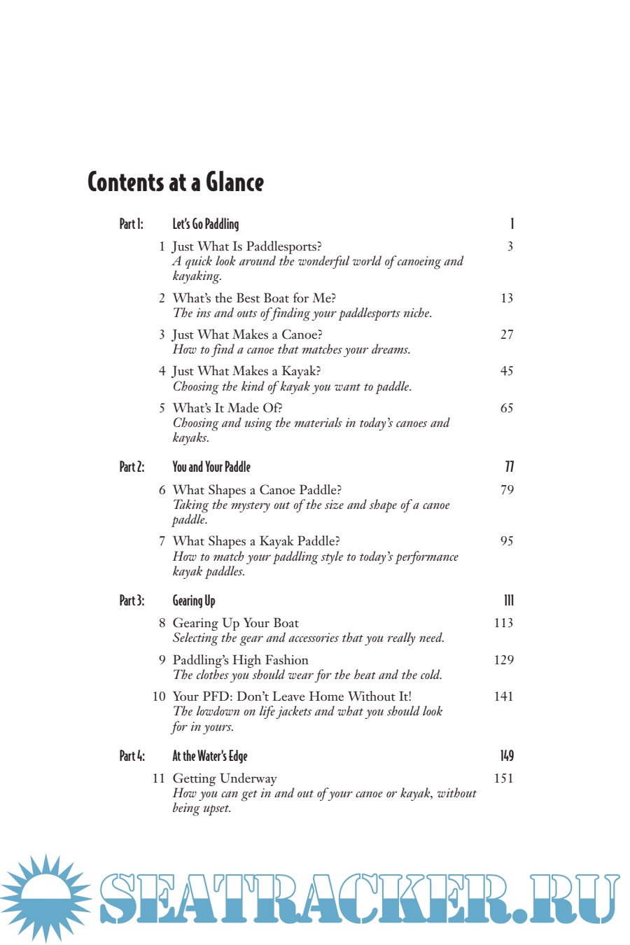 Description: Don't get caught without a paddle... Filled with nearly 100 photos and illustrations, this must-have guide-written by the foremost paddlesports experts-gives the aspiring canoe or kayak adventurer everything he or she needs to know before taking the plunge. Inside, discover how to choose between buying a canoe or a kayak, understand paddling techniques and strokes, and find out how to plan a trip and choose an outfitter or guide.