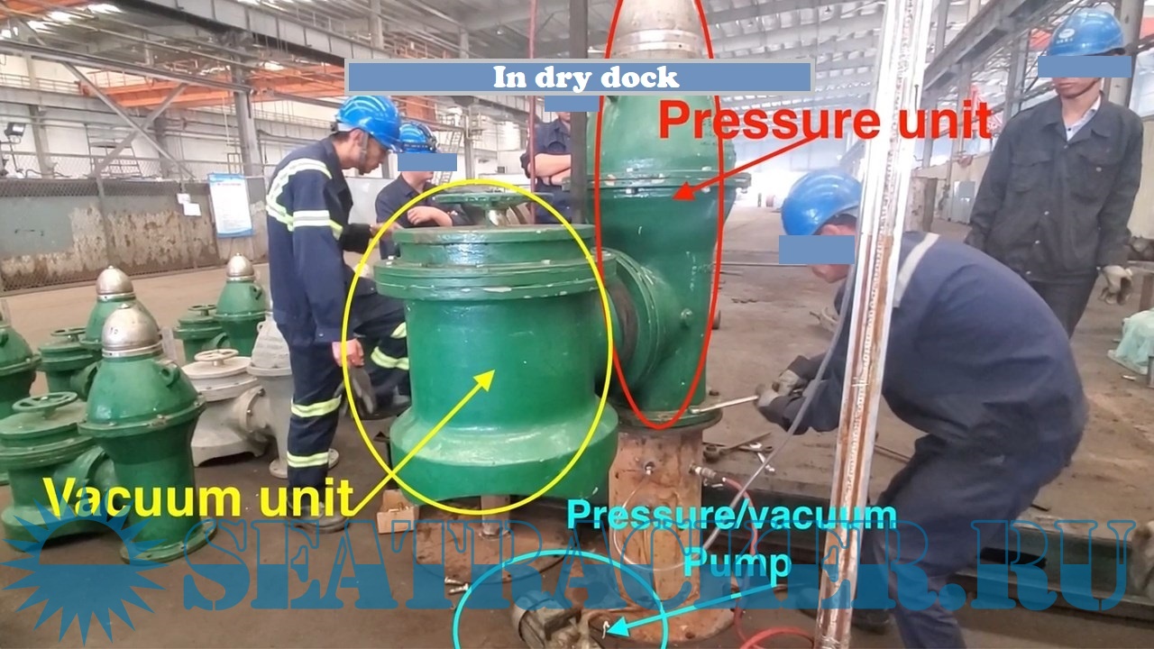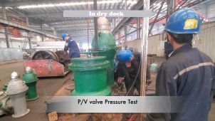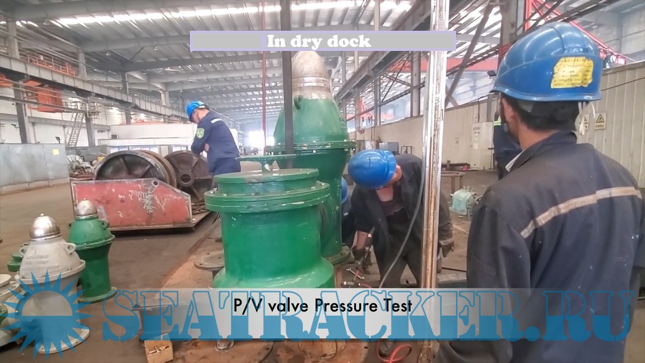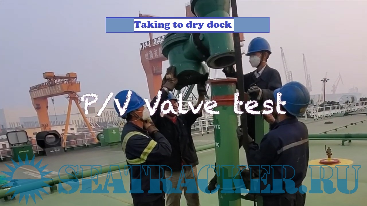 B) P/V Valve (Pressure/Vacuum Valve) test by men in dry dock