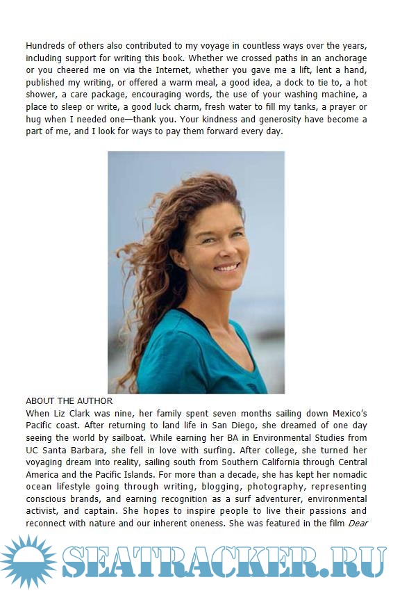 Year: 2018 Language: english Author: Clark L., Manini D. Genre: History Publisher: Patagonia ISBN: 193834054X Format: EPUB Quality: eBook Pages count: 305 Description: Chasing a dream is never easy, but if you go far enough, it will set you free. Captain Liz Clark spent her youth dreaming of traveling the world by sailboat and surfing remote waves. When she was 22, she met a mentor who helped turn her desire into reality. Embarking on an adventure that most only fantasize about, she set sail from Santa Barbara, California, as captain of her 40-foot sailboat, Swell, headed south in search of surf, self, and the wonder and learning that lies beyond the unbroken horizon. In true stories overflowing with wild waves and constant challenges, at the whim of the weather, of relationships sweet and sour, of nature’s marvels and colorful cultures, Liz captures her voyage in gripping detail in this memoir, sharing tales of sailing in high seas, of solitude and surprises, of finding connection to the earth and commitment to living in harmony with it. She witnesses how her dream leads her to understanding the unity of all things. More than ten years, 20,000 miles, countless adventures, and one cat later, she’s still out there.