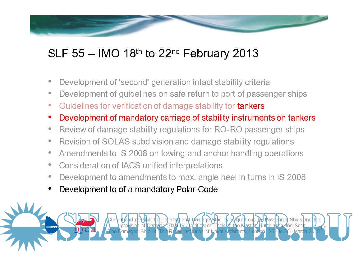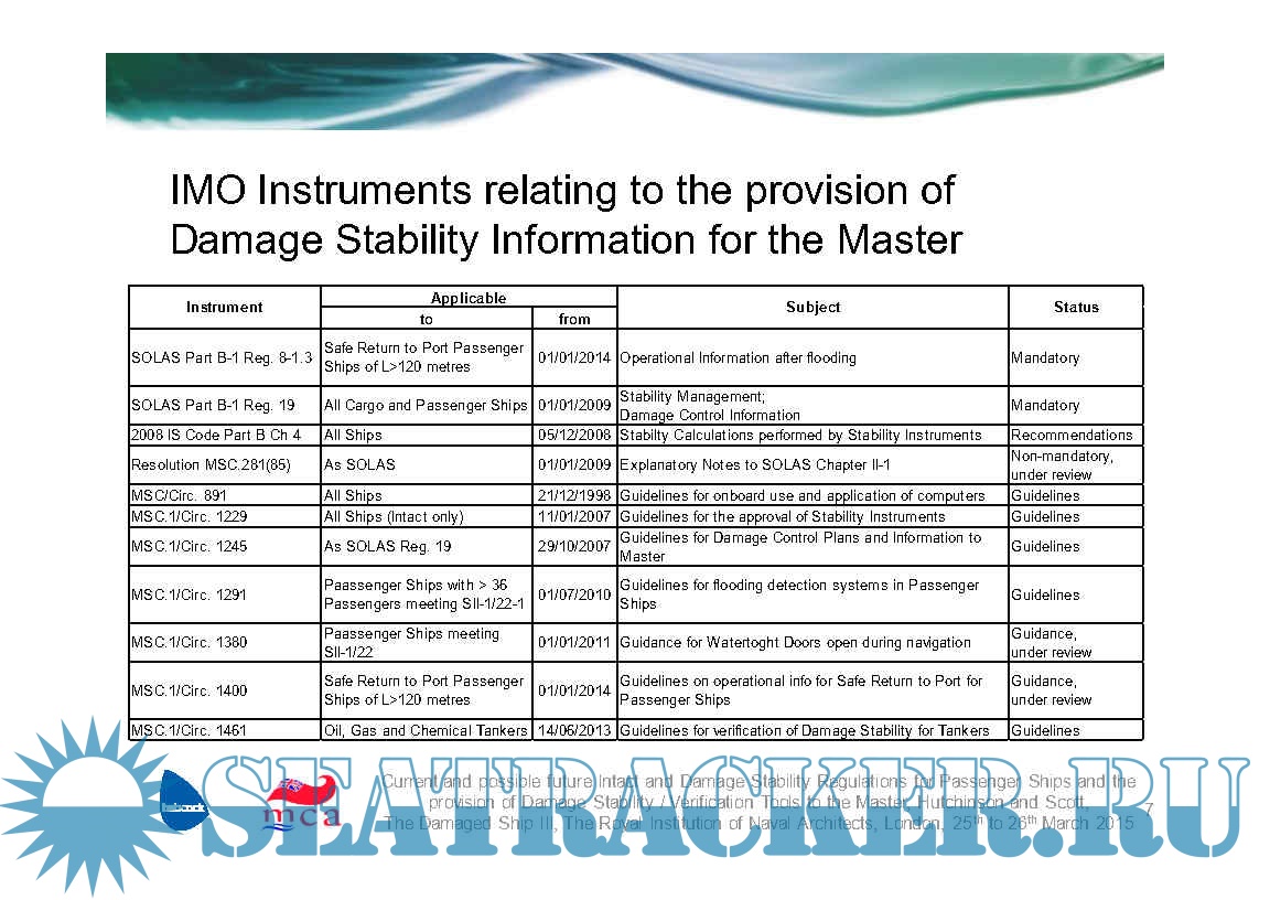 Description: Recent incidents at sea have shown that investigations and understanding of the behaviour of damaged ships are as important as ever. Significant process has been made over the last 10 years but there still remain numerous scientific and practical challenges.