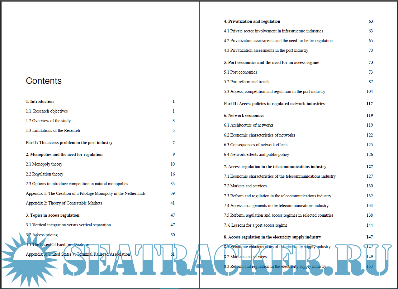Description: The problem of access arises in industries where inputs from monopolistic and competitive markets are complementarily needed to provide a service. In these circumstances, the firm controlling the monopolistic segment has incentives to deter competition in the competitive segments (markets) to recover profits foregone by regulation (Paredes, 1997). In the port industry, for example, a number of services need to be jointly provided to complete the logistics chain: pilotage, towage, stevedoring, storage, etc. Without any of these, cargo cannot be delivered. In ports where a terminal constitutes a natural monopoly, an integrated terminal operator has incentives to deter competition in the markets of services that are necessary to complete the logistics chain, since this would allow him to charge disproportionate prices and extract monopolistic rents. This strategy can be implemented by preferential treatment to itself or sister companies, or by restricting competitors access to the terminal. To avoid such situations from occurring, regulators have two options. They can either (i) forbid integration between terminal operators and carriers or, (ii) establish a framework under which all service providers are allowed to access and use the terminal under reasonable conditions. As suggested by Vickers (1995), the first option (vertical separation) may create non-trivial transaction costs that result in higher prices for the consumers, for which the second option (the implementation of access policies) constitutes a more desirable policy. However, formulating access policies is not an easy task. If access conditions are too high, a limited number of entrants will use the terminal, allowing providers to obtain economic rents. If conditions are too relaxed, an excess of entry may occur, thus reducing the terminal operator’s incentives to adequately maintain and expand the infrastructure (Laffont and Tirole 1994). The objective of this thesis is to analyze the characteristics of access policies implemented in the telecommunications, electricity supply, natural gas and railways industries, and to use the lessons learned from these experiences to propose a model suitable for the port industry.