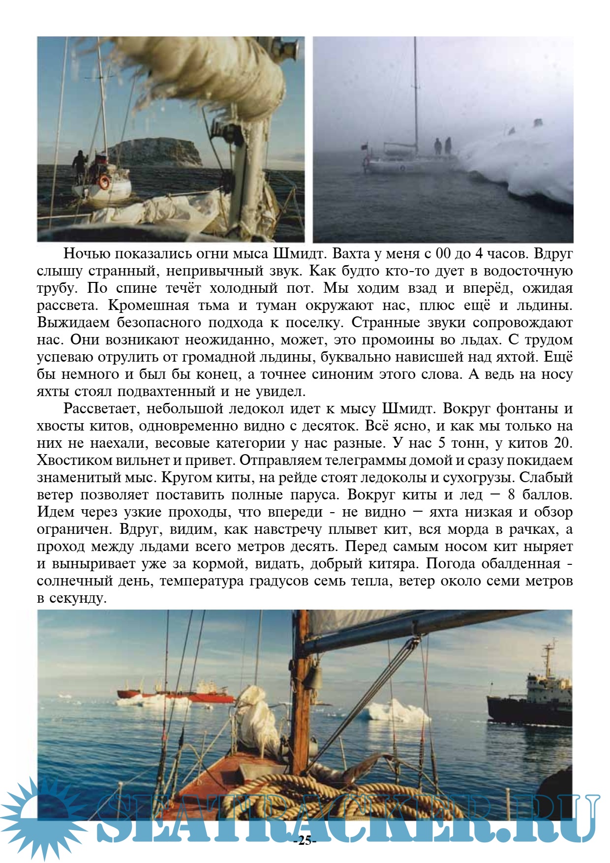 Год выпуска: 2011 Язык: русский Автор: Бочковский В. Жанр: История Издательство: Владислав Бочковский Формат: PDF Качество: Отсканированные страницы Количество страниц: 56 Описание: Прошло 20 лет, как спортивная парусная крейсерская яхта «Якуцк» впервые, за две навигации, прошла весь Великий Северный морской путь. И сейчас хотелось бы вспомнить и осмыслить это событие. Я благодарен Богу и судьбе за то, что принял в этом непосредственное участие. В.В. Бочковский 3 января 2020 года, Владиславу Всеволодовичу Бочковскому исполнилось бы 70 лет, но к сожалению, он скончался 14 декабря 2019 года, не дожив до своего 70-летия всего 20 дней. Доп. информация: Владислав Бочковский был известным яхтсменом, режиссёром и оператором более полусотни документальных фильмов. Одних материалов, использованных в передачах на центральных телевизионных каналах, таких как «Время», «Вести», «Клуб путешественников» и другие, подготовлено им более 500 штук. Участник и руководитель множества экстремальных экспедиций, парусных походов. Член Союза журналистов России, член Союза кинематографистов Якутии. На ТВ был автором и ведущим программ «По родной Якутии», «Клуб путешественников Якутии», «Служат наши земляки». Будучи корреспондентом Центрального телевидения снял и подготовил около 500 материалов показанных в программах «Время», «Вести», «Клуб путешественников» и др. Был дважды лауреатом премий журналистов Якутии «Золотое перо», лауреатом телефестивалей в г. Владивостоке, Магадане, Новосибирске, Петропавловске-Камчатском, Якутске за свои документальные фильмы, получил гран-при за вклад в кинолетопись Якутии, был удостоин звания «Почетный полярник», провел семь персональных фотовыставок, был даже начальником пресс службы Якутского казачьего полка, и конечно же он был Яхтенным капитаном.