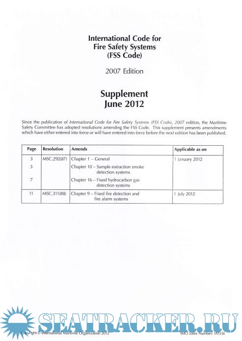 Additional info: Since the publication of FSS Code 2007 Edition, MSC has adopted resolutions amending the FSS Code. The supplement presents amendments which have either entered into force or will have entered into force before the next edition has been published.
