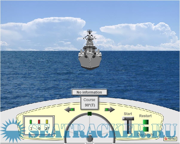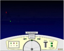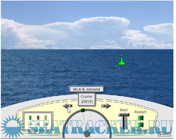 Описание: Вы находитесь за штурвалом моторного судна длиной до 20 метров и можете изменять курс вправо или влево с помощью стрелок. Запуск теста-тренажера осуществляется кликом мышки по рукоятке управления газом. Для переключения с дневного режима на ночной в любое время можно кликнуть по кнопке "Day/Night". Для перезапуска теста кликните "Restart" и после этого снова "Start" - по рукоятке газа.-You are at the helm of a motor boat up to 20 meters in length and can change course to the right or left using the arrows. The simulator test is started by clicking on the throttle control knob. To switch from day to night mode, you can click on the button at any time