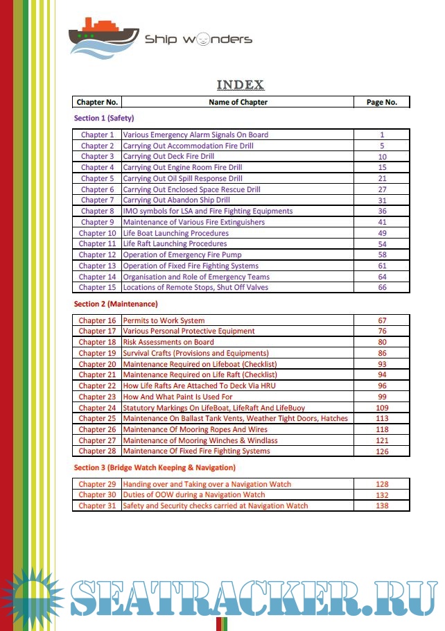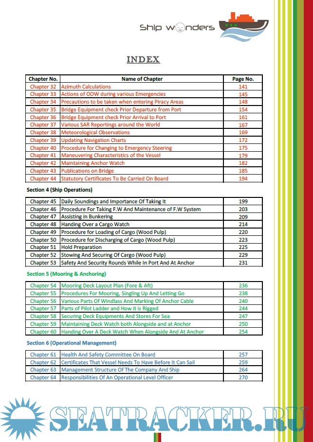 Year: 2016 Language: english Author: Capt. K.S. Chadha Genre: Manual Publisher: Ship Wonders Edition: 1st Format: PDF Quality: Unknown Pages count: 284 Description: The topics in this book have broadly been divided into: Safety, Maintenance, Watchkeeping and Navigation, Ship Operations, Anchoring and Mooring, Operational Management. These topics will give a broad idea to the readers of this book on how various tasks under the topics are performed onboard the ship.
