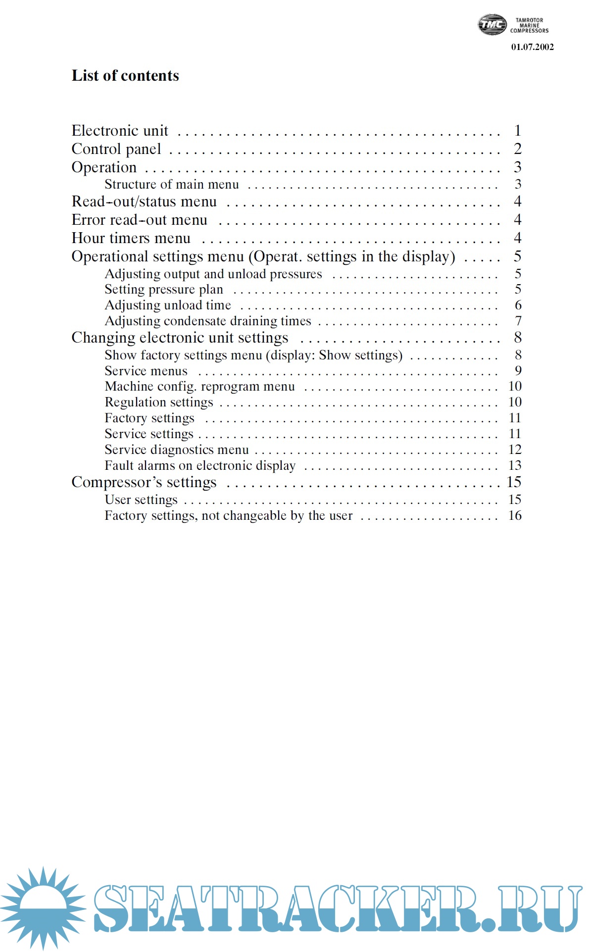Tamrotor Marine Compressors User Manual