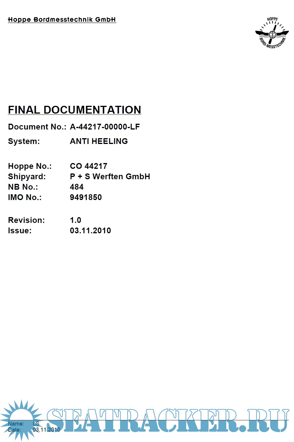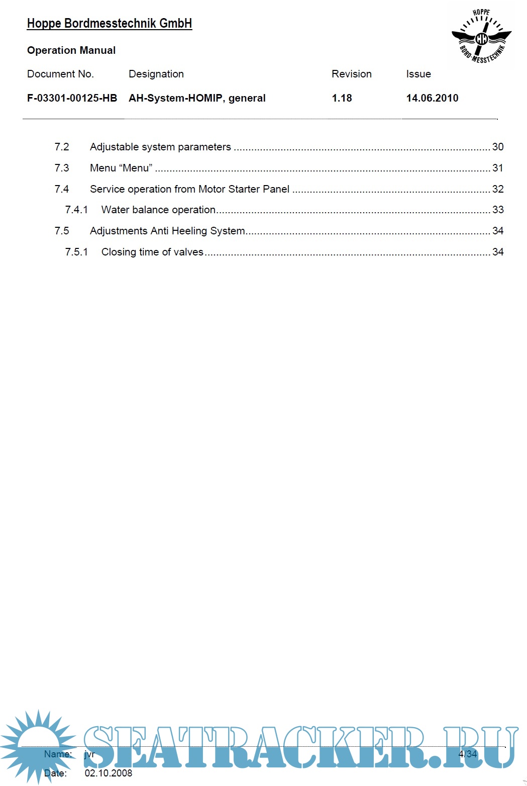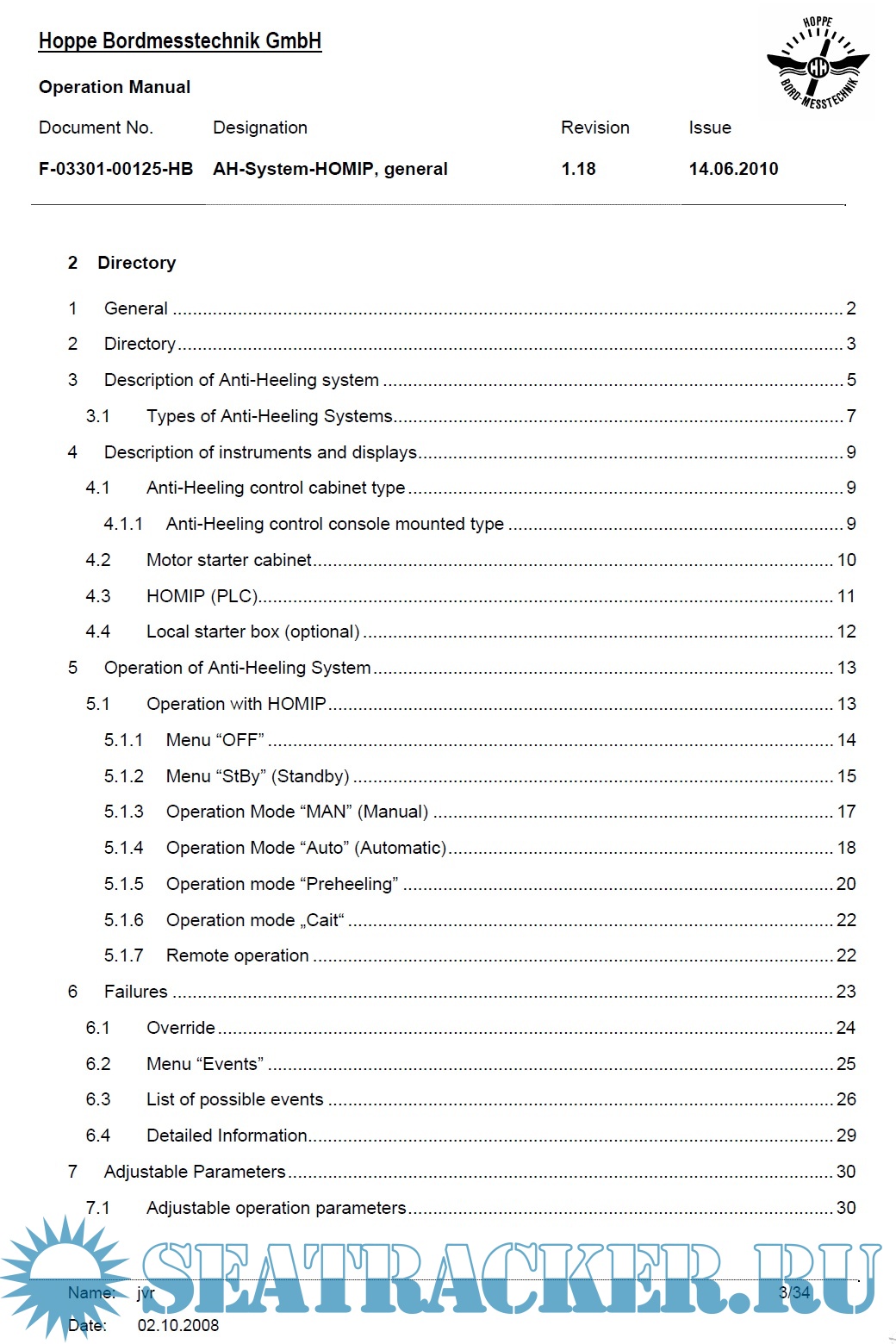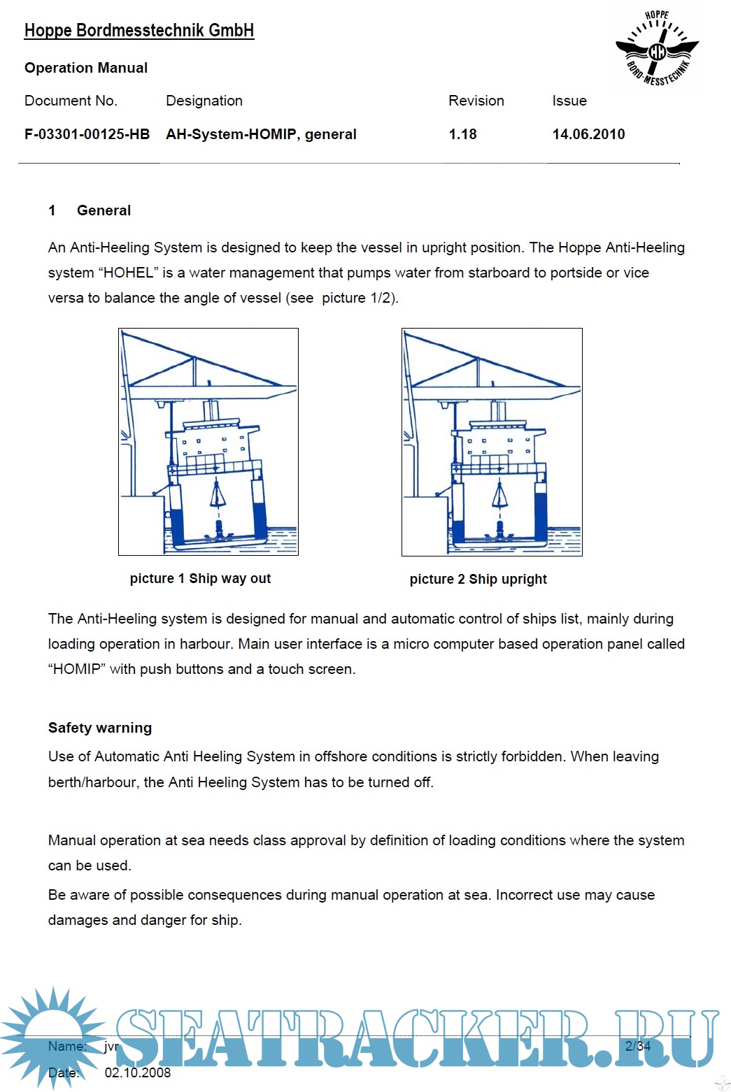 Description: Hoppe Anti-Heeling System Operating Manual