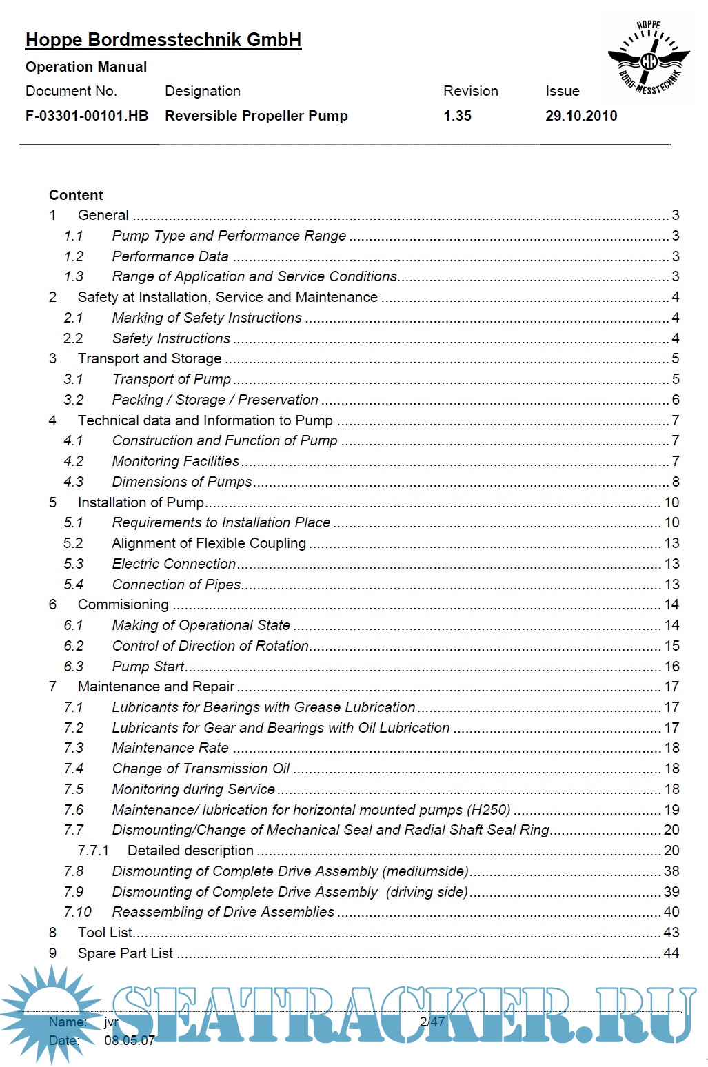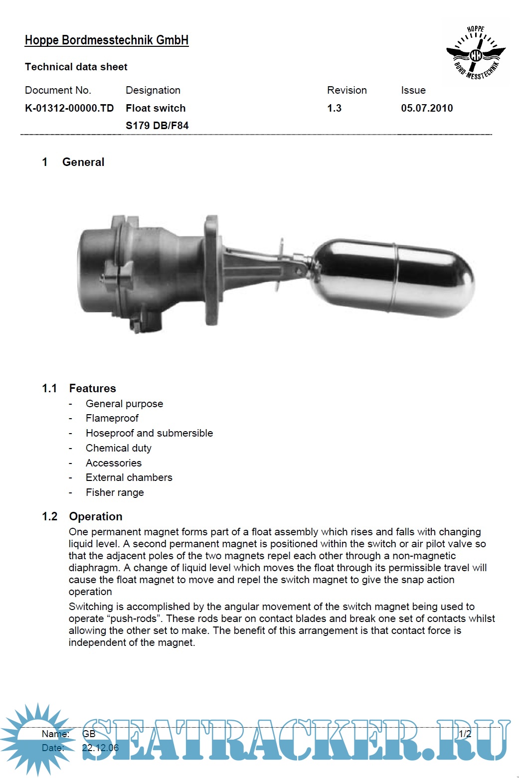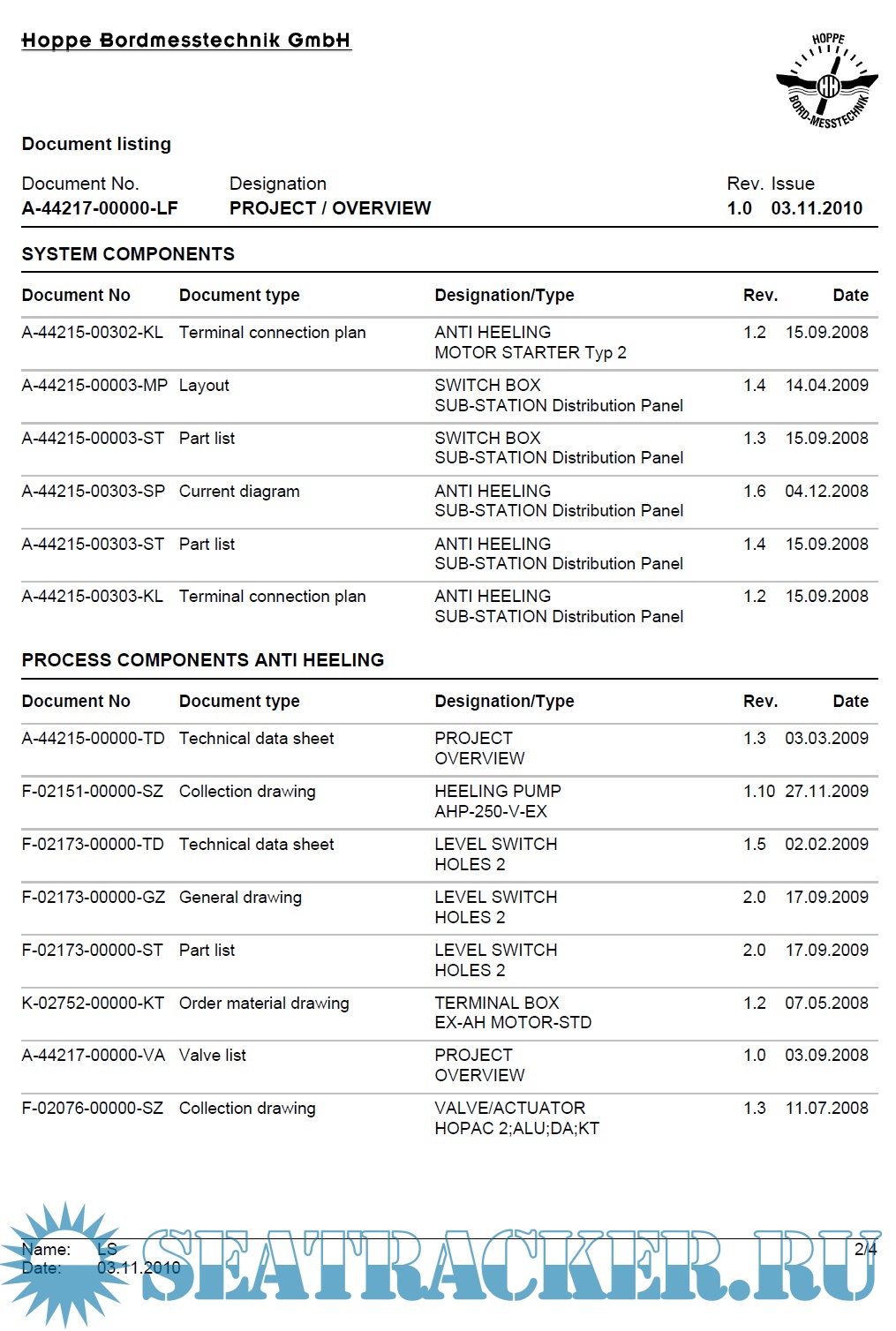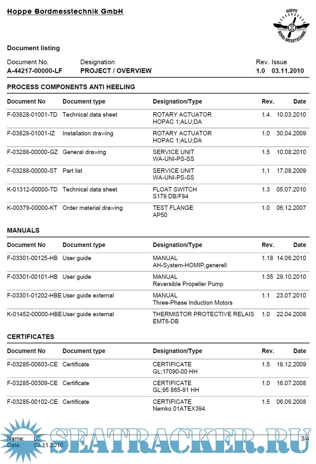 Description: Hoppe Anti-Heeling System Operating Manual