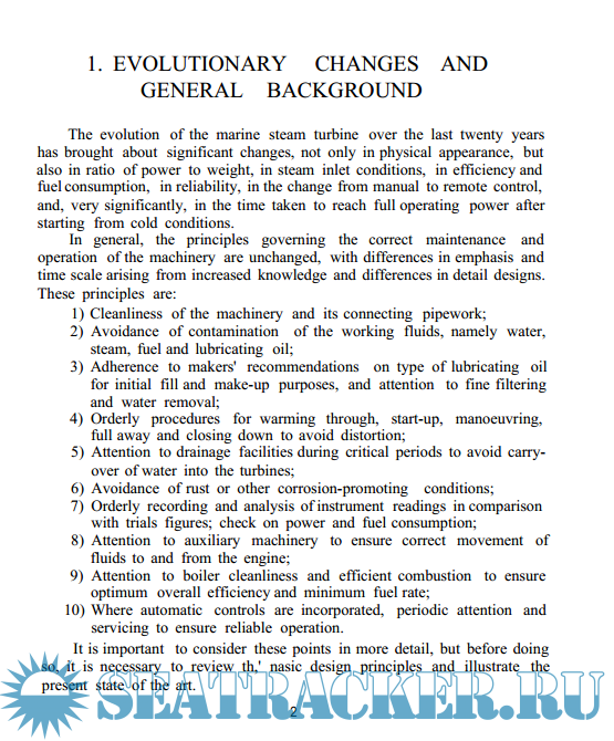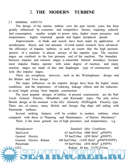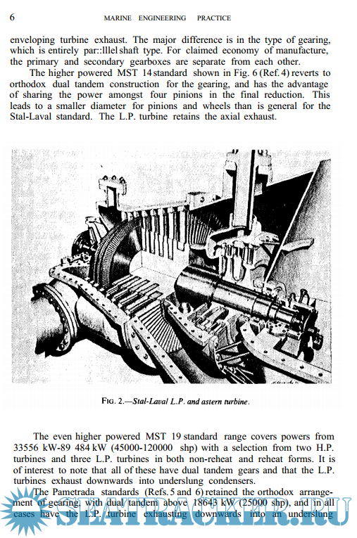 Year: 201x Language: english Author: R.Coats, C.Eng Genre: Practical guide Publisher: Institute of Marine Engineers Format: PDF Quality: OCR without errors Pages count: 107 Description: This Part is an attempt to review a wide range of marine turbine machinery. Of necessity, many interesting designs have had to be omitted. It has not been thought necessary to delve too deeply into the past, as the old designs have already been adequately covered.· Many turbines of these older types are still undoubtedly in good service, but, in the main, the illustrations in the present work will show more recent designs. It is hoped that the student or the operator of the older type of machinery will refer to the earlier book· for relevant information. It is hoped that the ground covered, and particularly the section on the operating aspects of the machinery will be of real practical value, and that. the supplementary information given in the abstracts from important papers on steam turbine machinery will provide a good stimulus for further study.