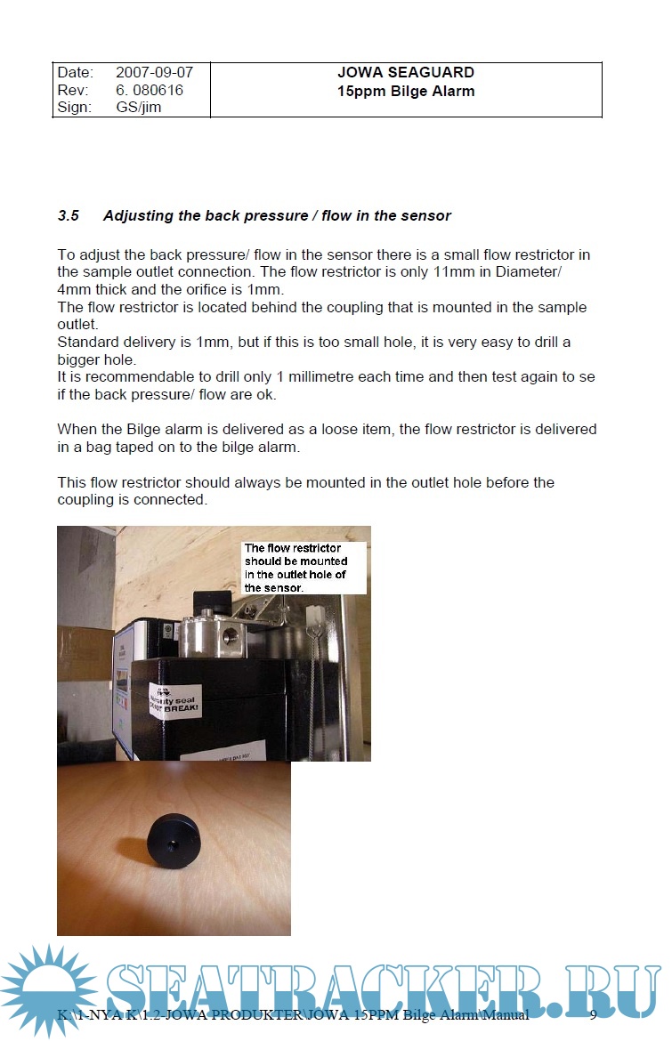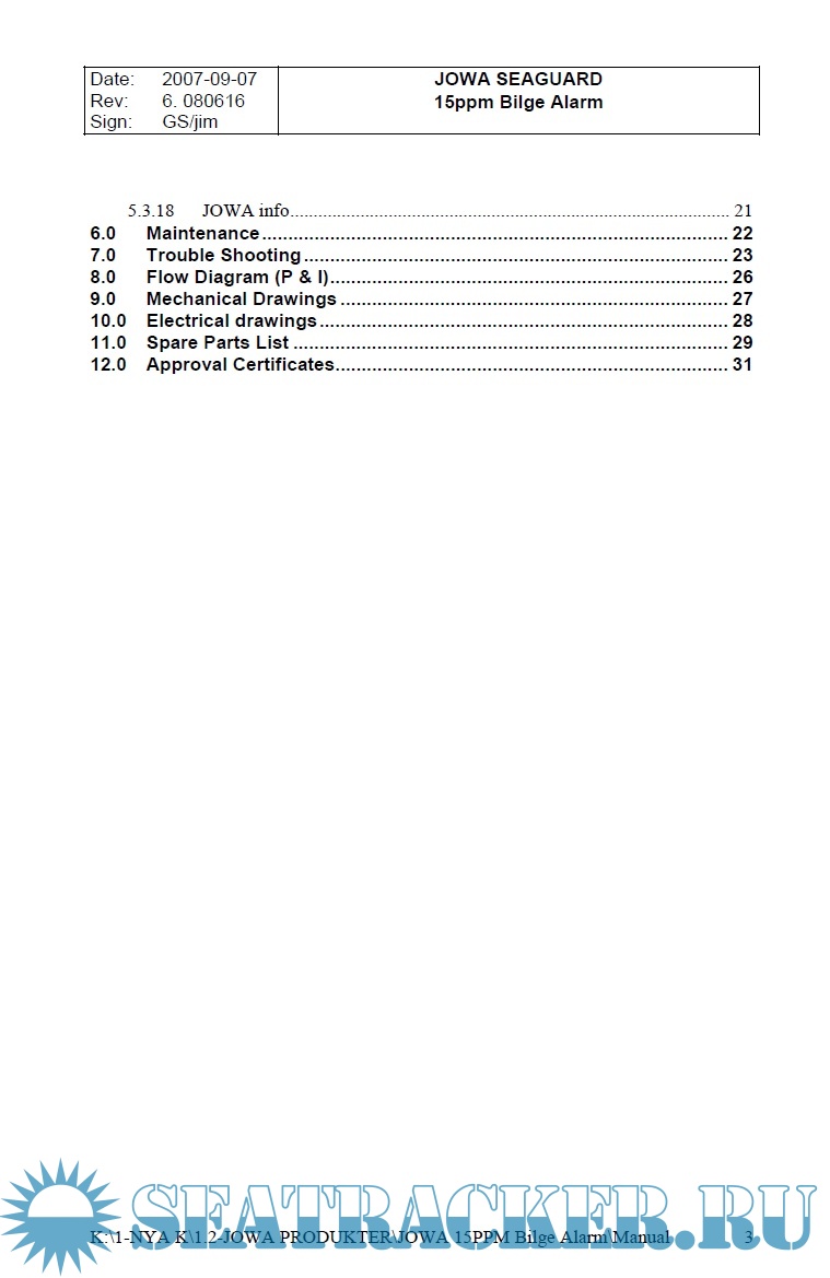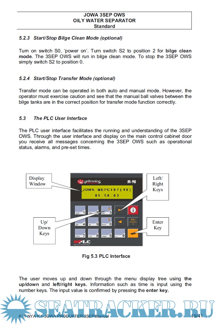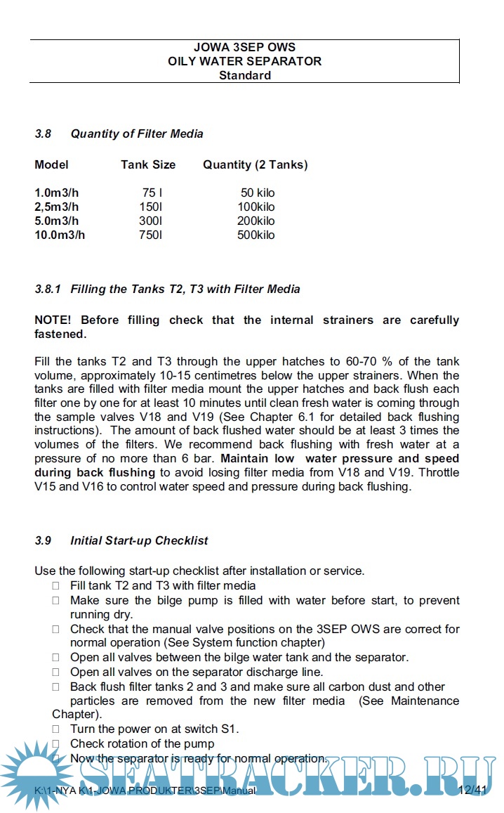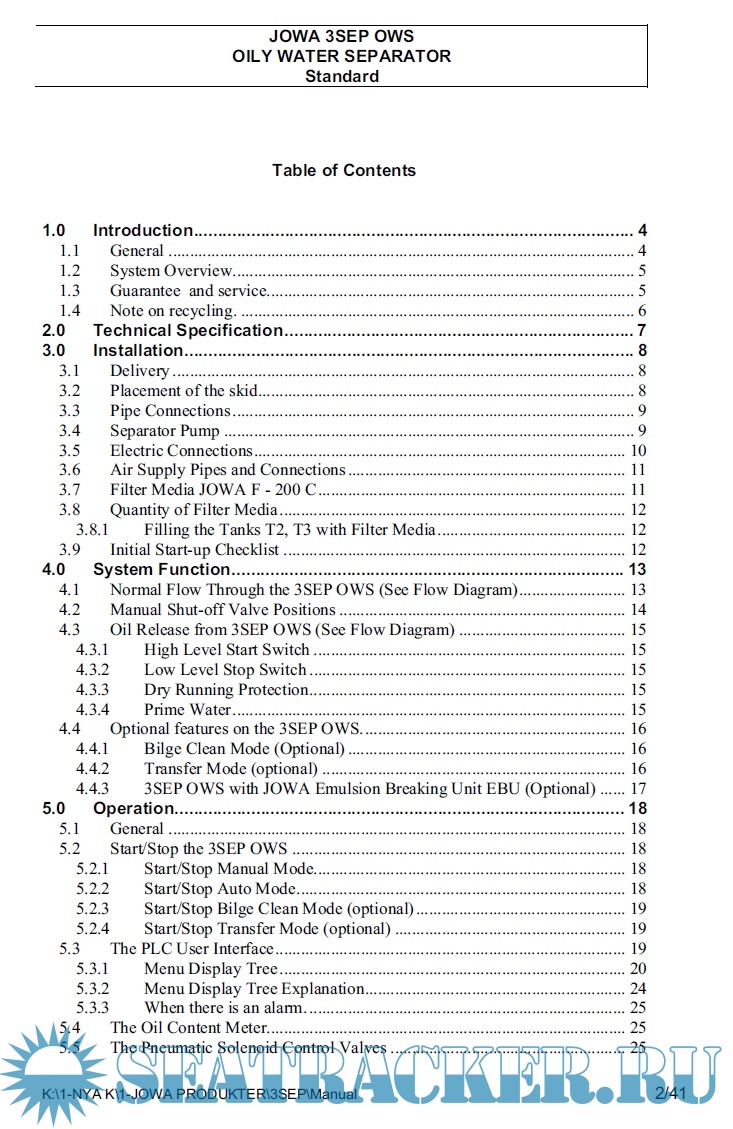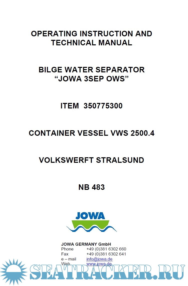 Description: Bilge Water Separator Operating Instruction and Technical Manual "JOWA 3SEP OWS"