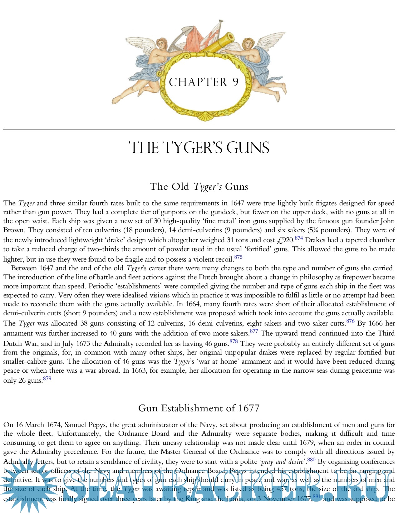 Tyger was originally built in the middle of the 17th century and served in the Anglo-Dutch Wars. It was sent to Deptford for rebuilding at the end of the wars in 1674, but the ship was left to deteriorate over the next few years and ended up as a sunken wreck at the bottom of the great double dock. Eventually, the yard officers at Deptford wrote that there was “no such thing as the Tyger” and wanted to pay off the last warrant officers belonging to her. However, King Charles II decided otherwise and kept her on the books to eventually reappear as a “rebuilt” but in fact, entirely new ship in 1681.