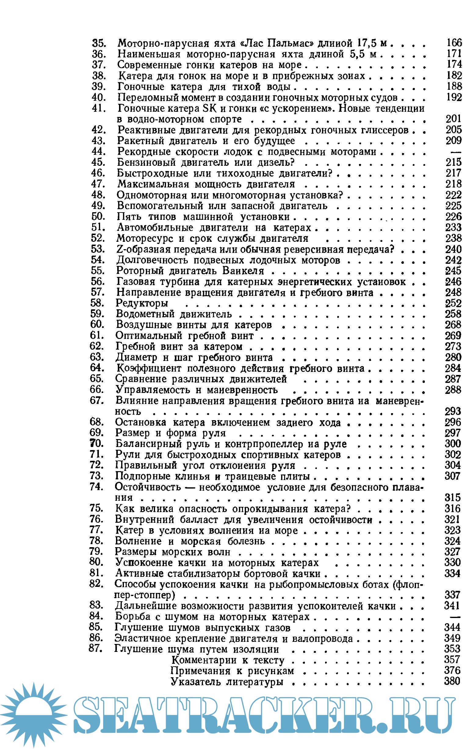 Книга рассчитана на широкий круг читателей: конструкторов, занимающихся созданием малотоннажных моторных судов различных типов, и лиц, интересующихся спортивным катеростроением, водно-моторным спортом и туризмом.