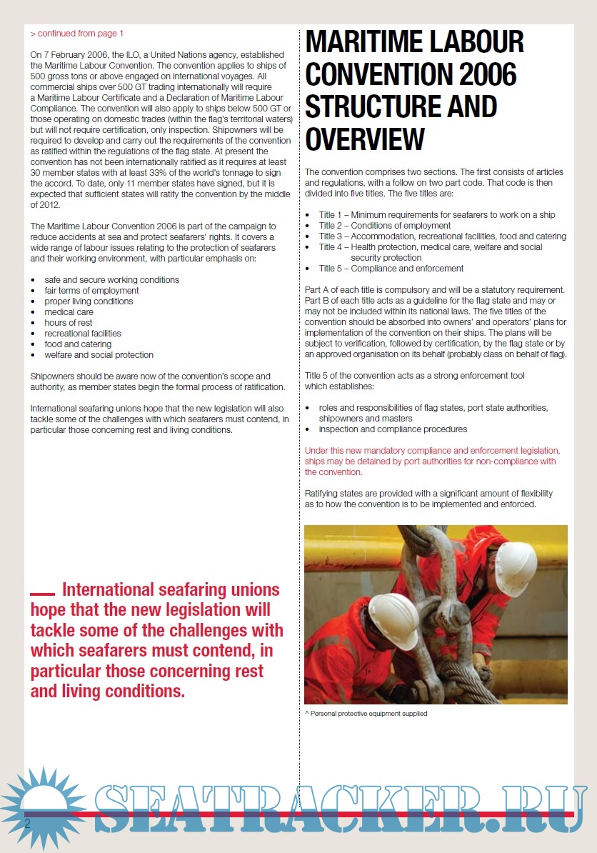 Description: In this special edition of Standard Safety we outline the requirements of the Maritime Labour Convention 2006. The convention has been described as the ‘fourth pillar’ of international maritime regulatory conventions, complementing: The International Convention for the S • afety of Life at Sea (SOLAS)