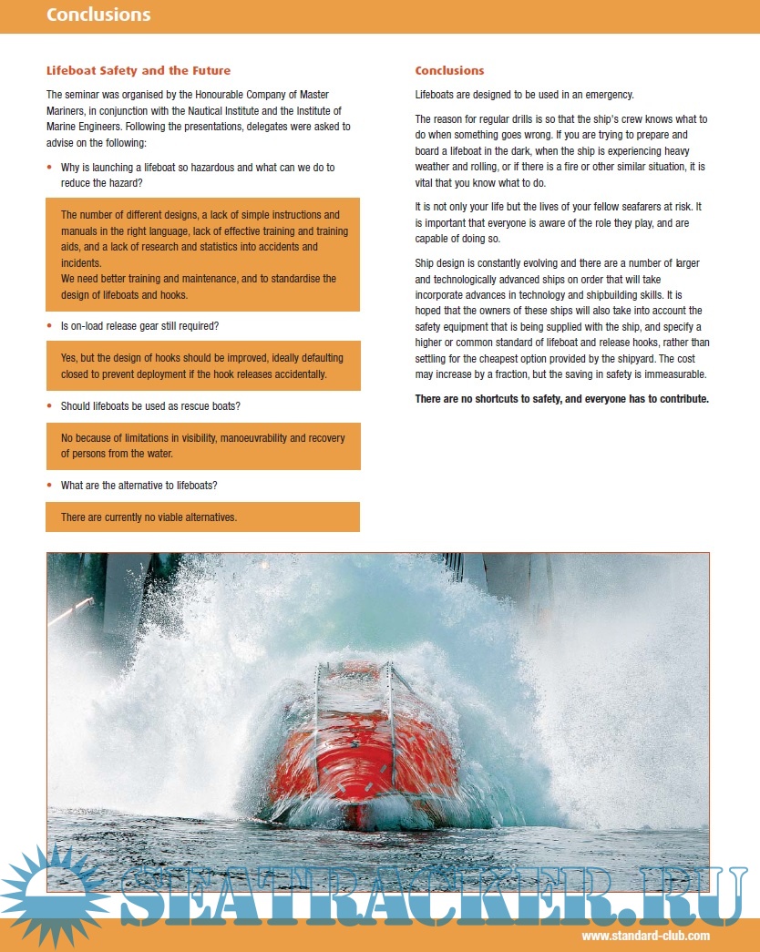 In recent years, there have been a number of accidents during routine lifeboat drills, despite updated training and new designs of hooks, boats and davits. Part of the problem is the number of designs of hooks and lifeboats in service, estimated at more than 70, and it is essential that the crew are familiar with and capable of operating the equipment fitted on their ship.