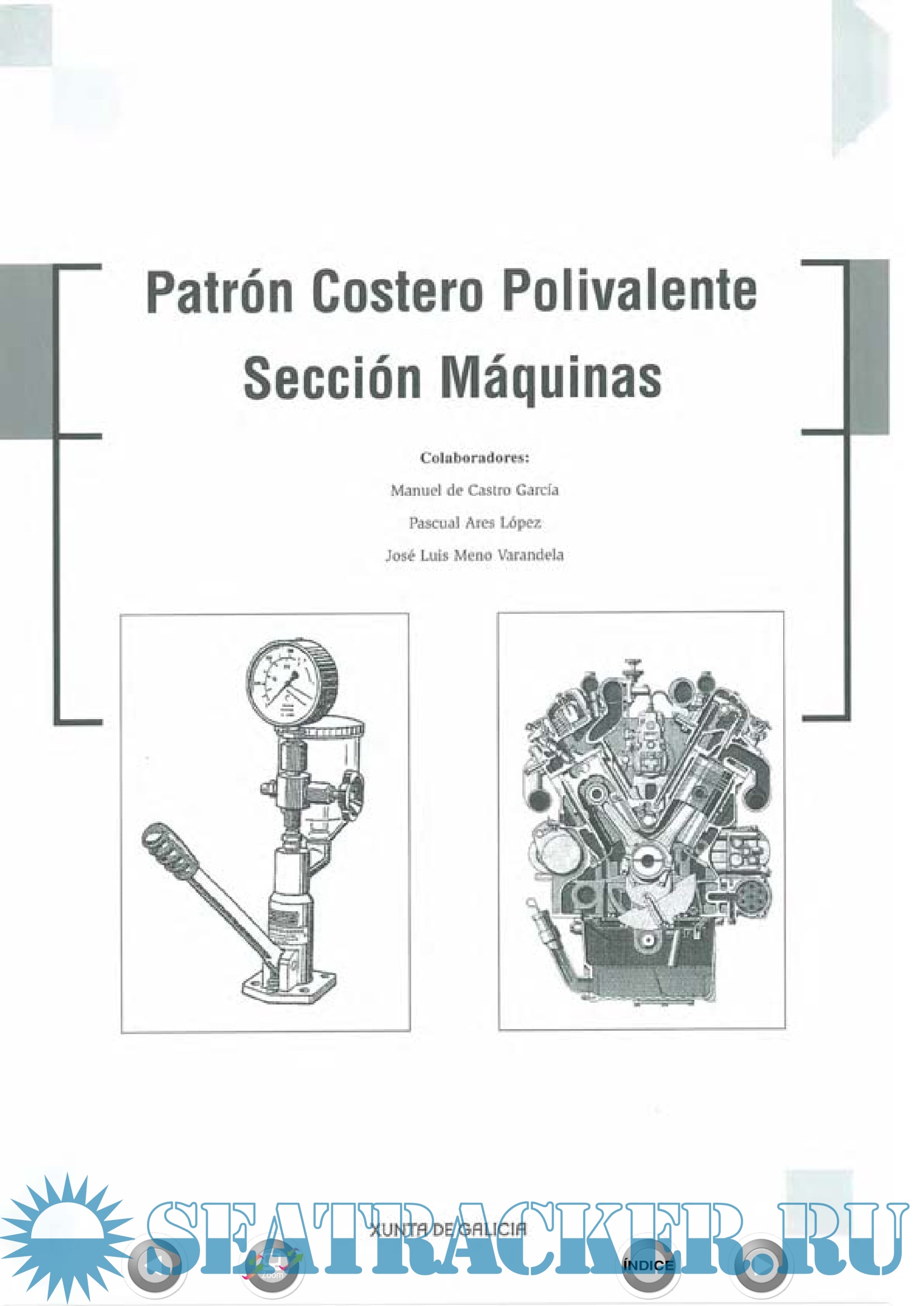 Year: 2005 Language: spanish Author: Xunta de Galicia Genre: Manual Format: PDF Quality: Scanned pages Pages count: 208 Description: Manual para seguimiento de curso de Patrón Costero Polivalente. Sección Máquinas.
