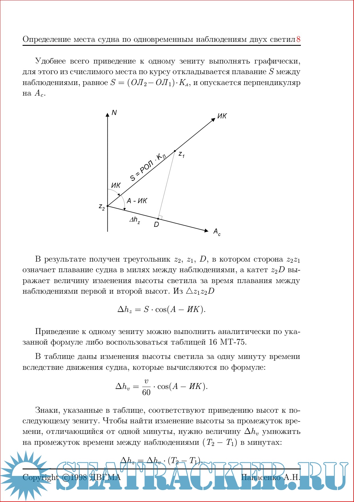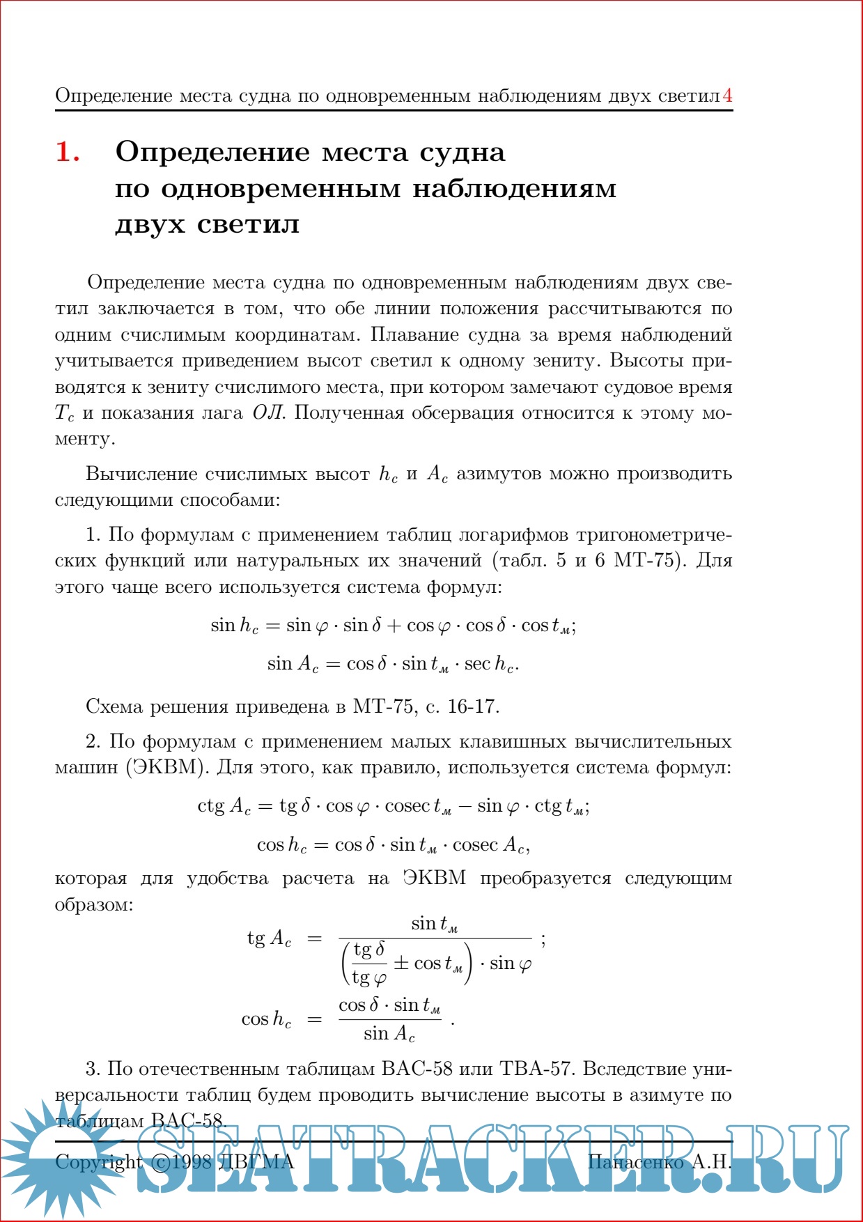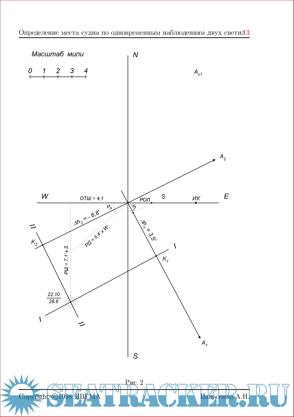 Определение места судна по одновременным наблюдениям двух светил - Методические указания к выполнению лабораторных работ по мореходной астрономии