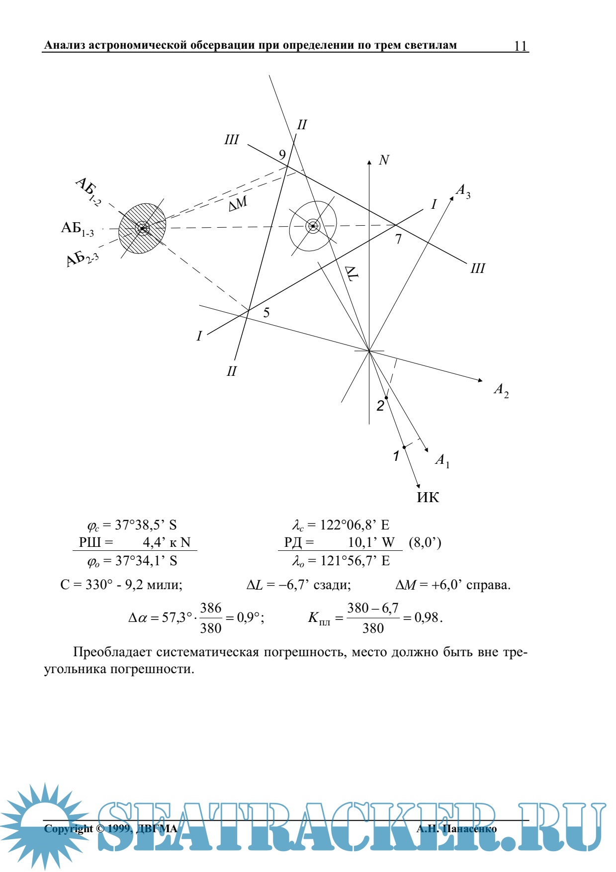 Анализ астрономической обсервации при определении по трем светилам - Методические указания к выполнению лабораторных работ по мореходной астрономии