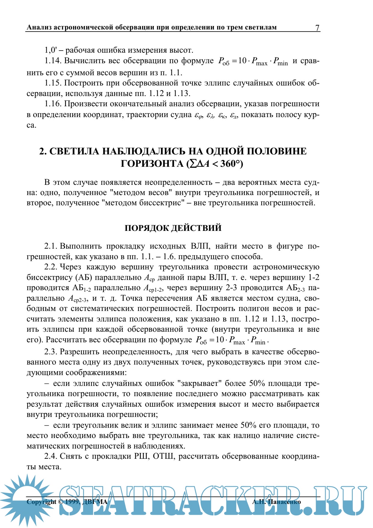 Аналитический расчет координат места судна при избыточном числе измерений - Рубинштейн Д.Н.,…