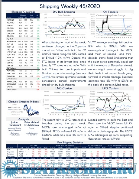 Cleaves Securities: Shipping Week 45/2020