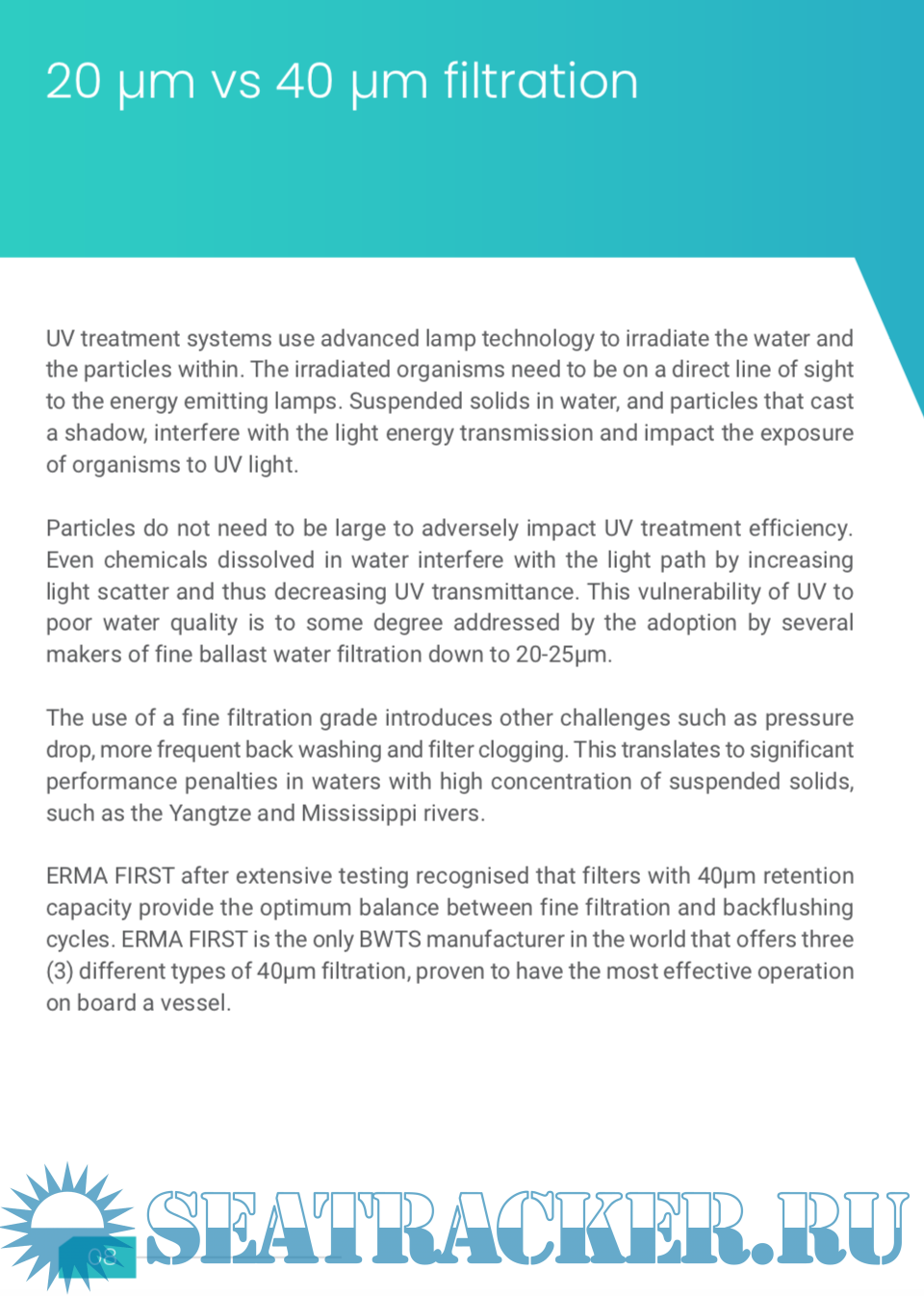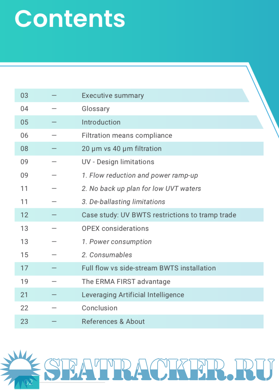 Year: 2020 Language: english Author: Ermafirst Genre: Methodological guide Publisher: Ermafirst Format: PDF Quality: eBook Pages count: 23 Description: Lessons learnt from the operation of the main Ballast Water Treatment System types. A detailed examination of real-life operational performance of key technologies including filters, electro-chlorination, UV and side-stream electrolysis.