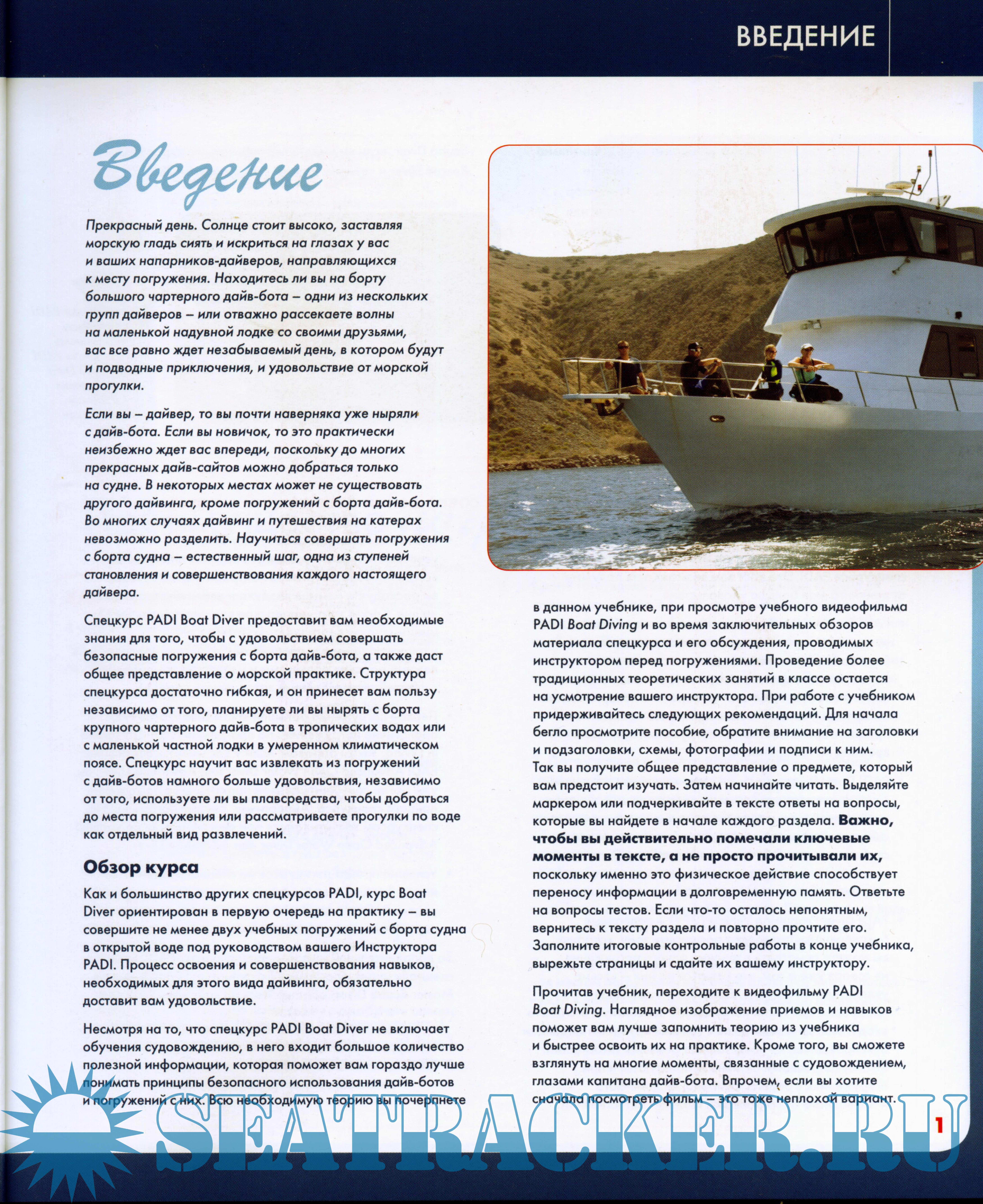 Описание: Спецкурс PADI Boat Diver предоставит вам необходимые знания для того, чтобы с удовольствием совершать безопасные погружения с борта дайв-бота, о также даст общее представление о морской nпрактике. Структура спецкурса достаточно гибкая, он принесет вам пользу независимо от того, планируете ли вы нырять с борта крупного чартерного дайв-бота в тропических водах или с маленькой частной лодки в умеренном климатическом nпоясе. Спецкурс научит вас извлекать из погружений с дайв-ботов намного больше удовольствия, независимо от того, используете ли вы плавсредства, чтобы добраться до места погружения или рассматриваете прогулки по воде как отдельный вид развлечений.