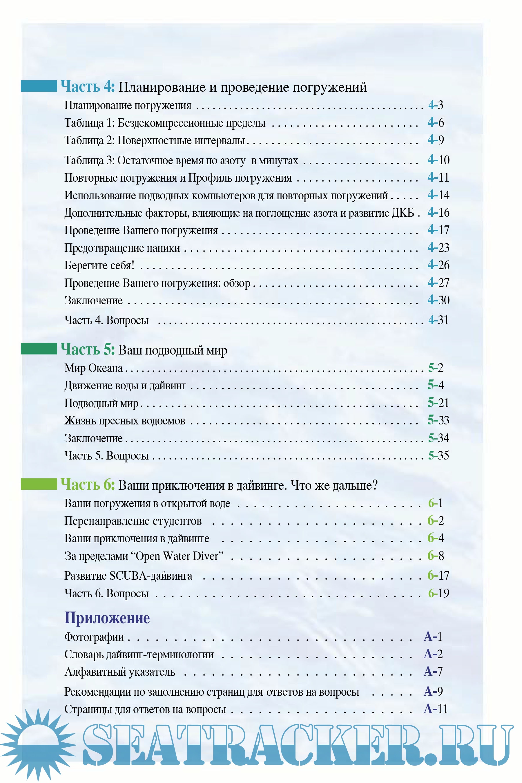 Дайвинг - это вид занятий, сопряженный с риском. Каждый дайвер в отдельности, принимающий участие в любом виде погружений, обязан согласиться с рисками и принять на себя ответственность за свои действия. Автор и издатель (и уж тем более раздающий) не несут никакой ответственности ни перед кем за утери, повреждения, травмы или смерть, вызванные любыми ошибками, пропусками в тексте, а также личной интерпретацией текста дайвером. Любая подобная ответственность не признается. Информация в данном пособии относится к дайвинrу с аквалангом и должна использоваться только как дополнение к утвержденному курсу обучения, который проводит сертифицированный инструктор.Данный учебник не может заменить профессиональный инструктаж и здравое отношение.