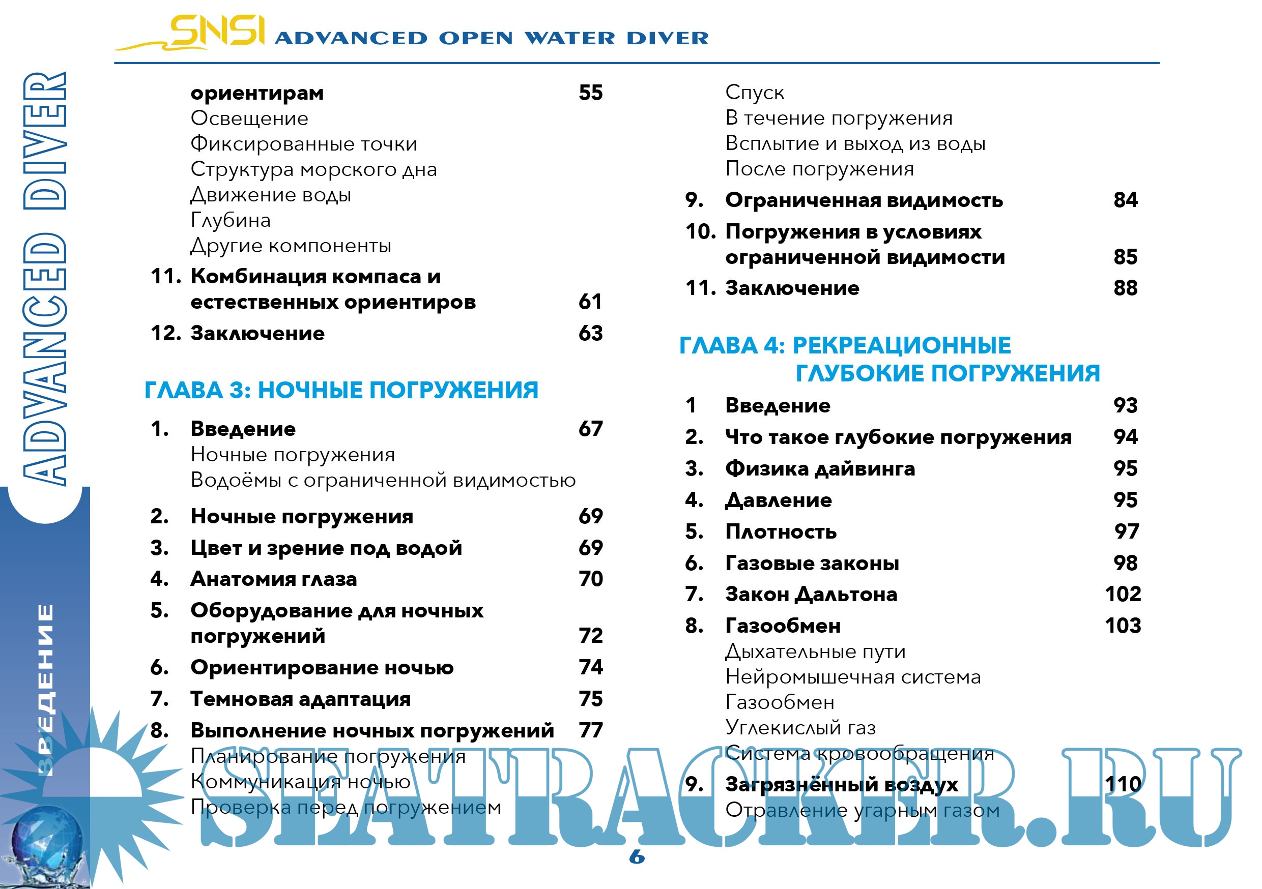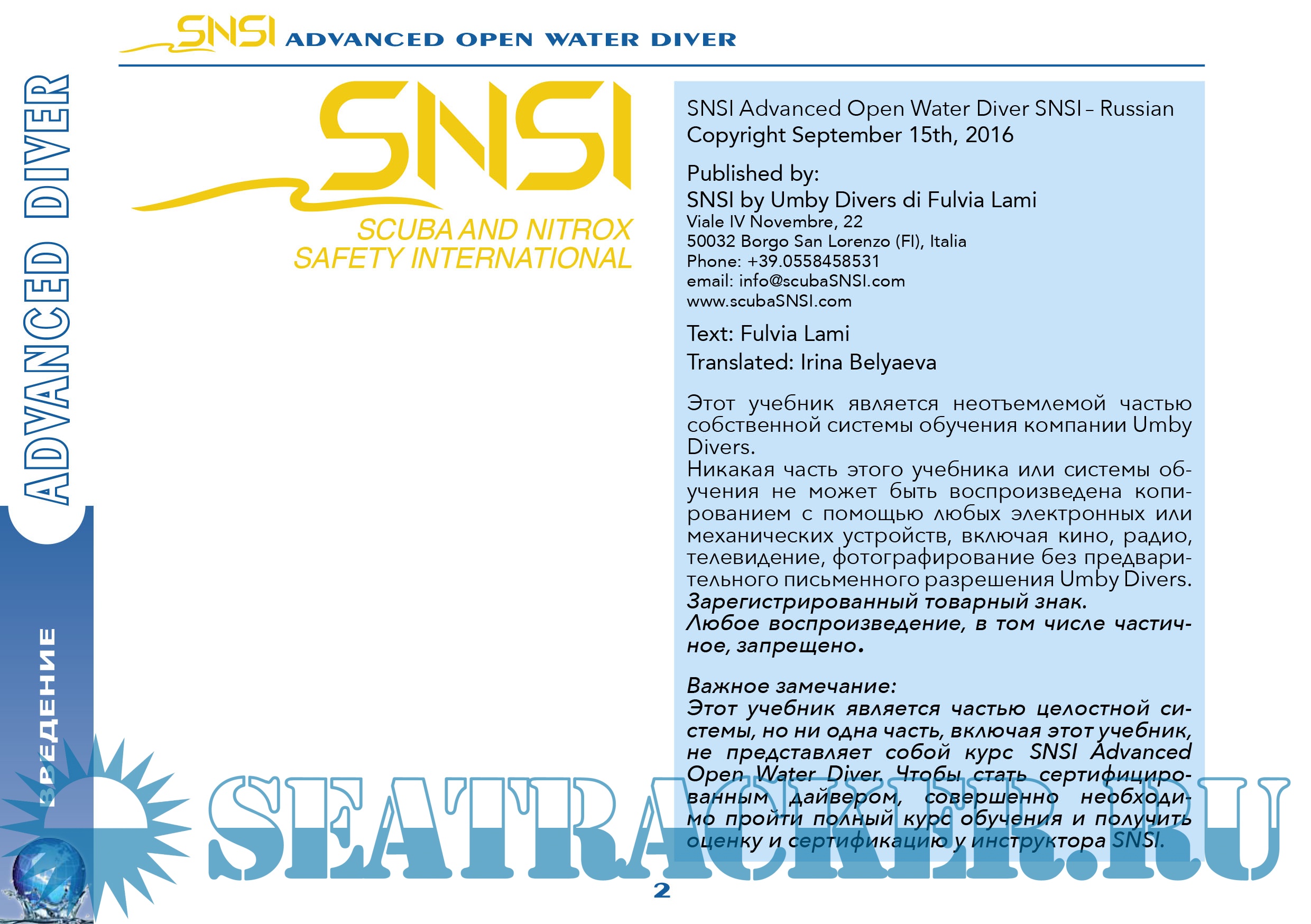 Учебник к курсу "Advanced Open Water Diver" SNSI
