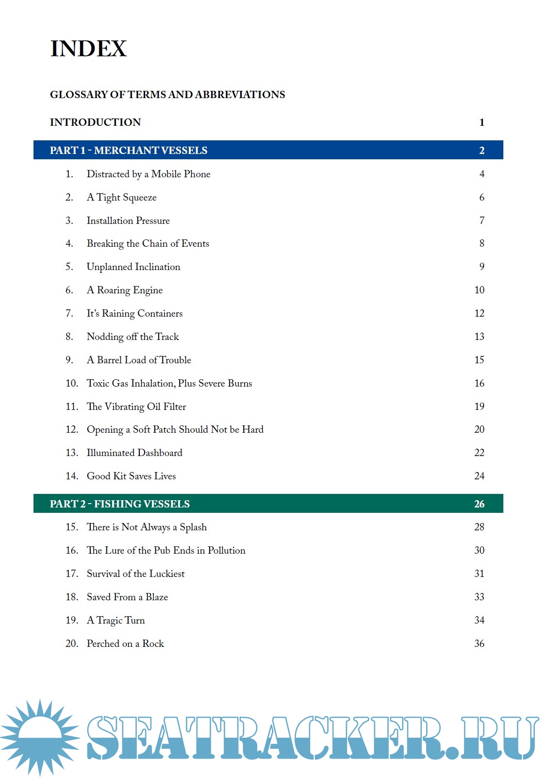 Year: 2020 Language: english Author: Marine Accident Investigation Branch Genre: Research papers Publisher: Marine Accident Investigation Branch Format: PDF Quality: eBook Pages count: 53 Description: The Marine Accident Investigation Branch examines and investigates all types of marine accidents to or on board UK vessels worldwide, and other vessels in UK territorial waters. The purpose is to improve safety at sea by determining the causes and circumstances of marine accidents, and to contribute to prevent such accidents recurring in the future. The Safety Digest briefly describes some cases and the lessons arising from investigations into recent accidents and incidents. Separate sections are dedicated to shipping industry, fishing vessels and pleasure crafts. Appendices deal with general topics, statistics and reports on MAIB activity. This issue is no. 1, 2020