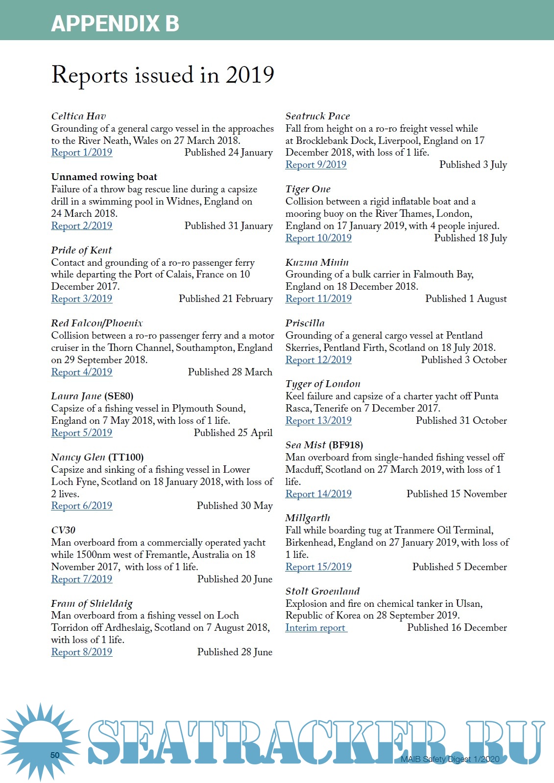 Safety Digest, Lessons from Marine Accident Reports No 1-2020