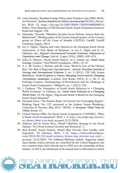 Year: 2019 Language: english Author: Erica Duarte Genre: Technical book Publisher: palgrave ISBN: 3030105997 Format: PDF Quality: eBook Pages count: 211 Description: This edited volume analyzes national security issues with maritime implications, and, specifically, naval projects and postures of main South Atlantic countries: Brazil, Argentina, Nigeria, and South Africa. Additionally, it provides a comprehensive and multi-level analysis of the interplay among national interests in the processes of demarcation of limits of the continental shelf and contention among Uruguay, Chile, Argentina, and the United Kingdom in the Southern Atlantic and Antarctica. This book will interest scholars, researchers, and students in the fields of Latin American politics, regional studies, foreign and defense policy, and maritime security.
