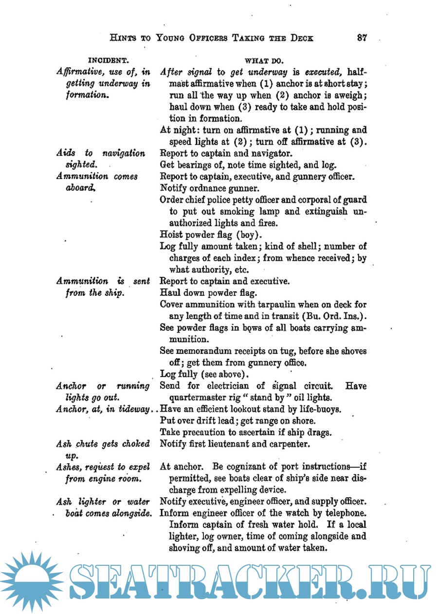 Year: 1918 Language: english Author: US Naval Academy Genre: Textbook Publisher: US Naval Academy Format: PDF Quality: Scanned pages Pages count: 183 Description: Initially conceived as an integration of textbooks of the US Naval Academy, in the form of pamphlet, these notes have become a separate text. They deal with cutter and launches handling and drill programs, mooring, anchoring, notes on properly writing the log, rules of the road, managing grounding events and much more.