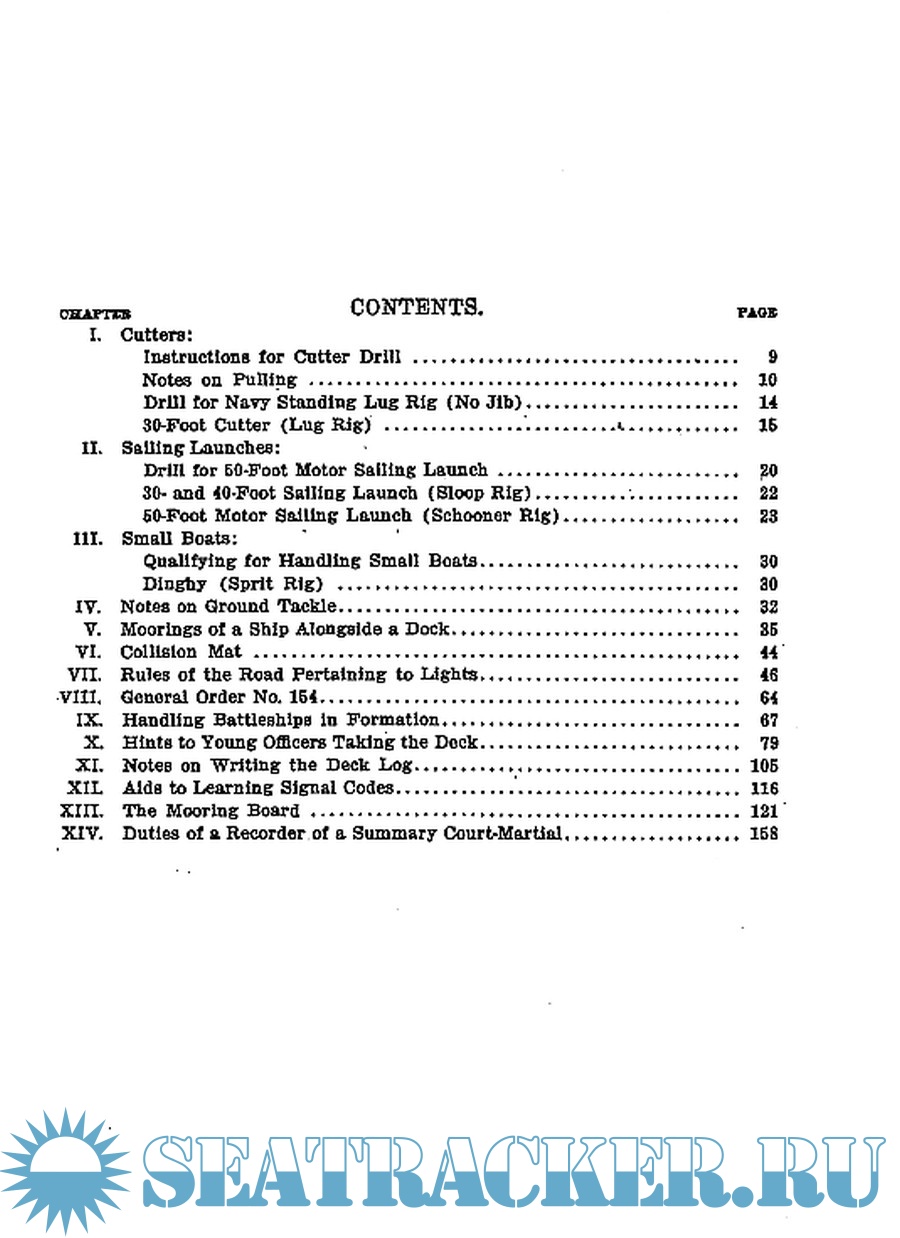 Description: Initially conceived as an integration of textbooks of the US Naval Academy, in the form of pamphlet, these notes have become a separate text. They deal with cutter and launches handling and drill programs, mooring, anchoring, notes on properly writing the log, rules of the road, managing grounding events and much more.
