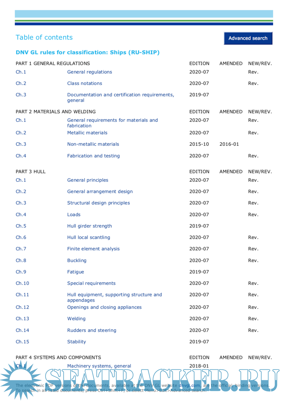 Ch.1 Machinery and systems, general Ch.2 Rotating machinery, general Ch.3 Rotating machinery - drivers Ch.4 Rotating machinery - power transmission Ch.5 Rotating machinery - driven units Ch.6 Piping systems Ch.7 Pressure equipment Ch.8 Electrical installations Ch.9 Control and monitoring systems Ch.10 Steering gear Ch.11 Fire safety