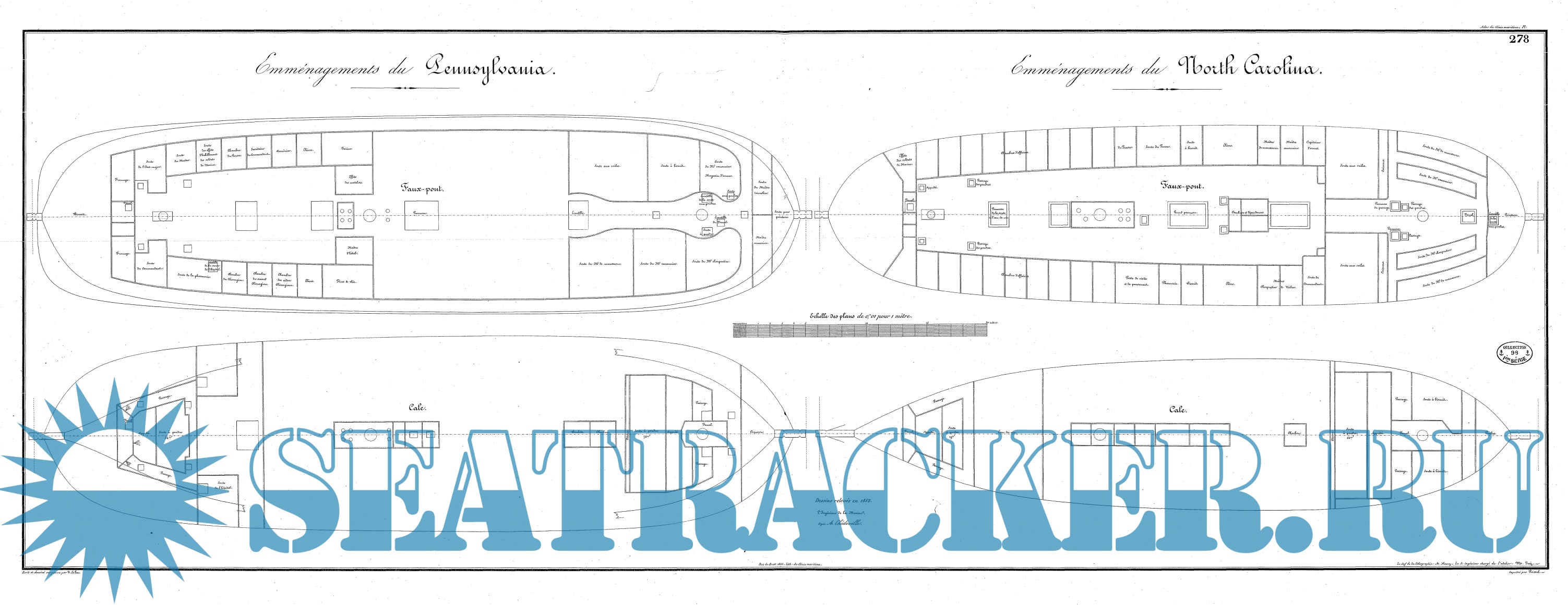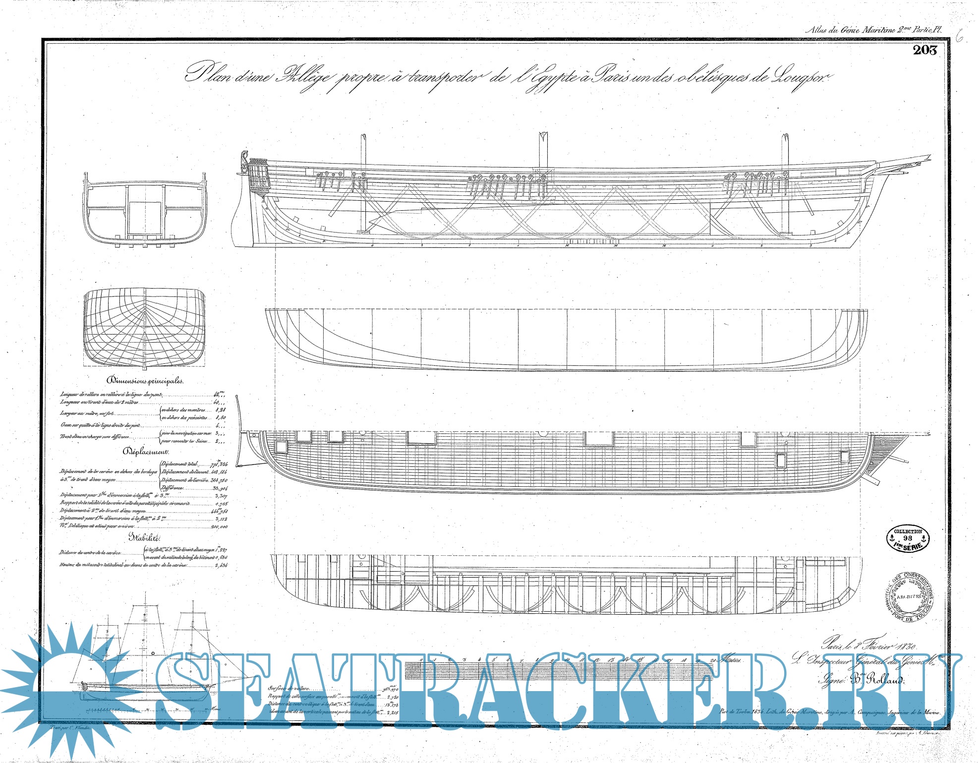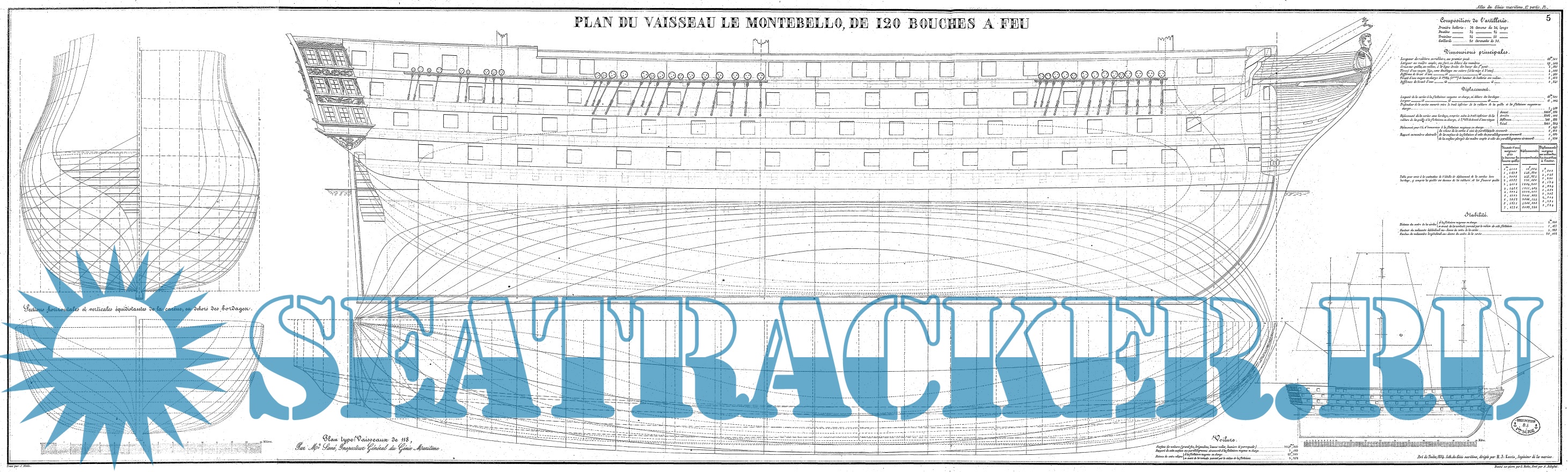 Корабельный Атлас с подробными черно-белыми схемами и чертежами парусных судов. Atlas du Génie Maritime содержит несколько сотен планов кораблей, обводов корпуса, планов парусов, такелажа и оборудования судов XIX века.