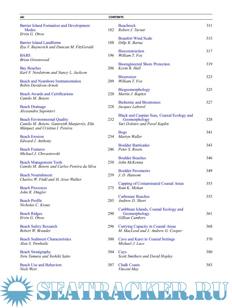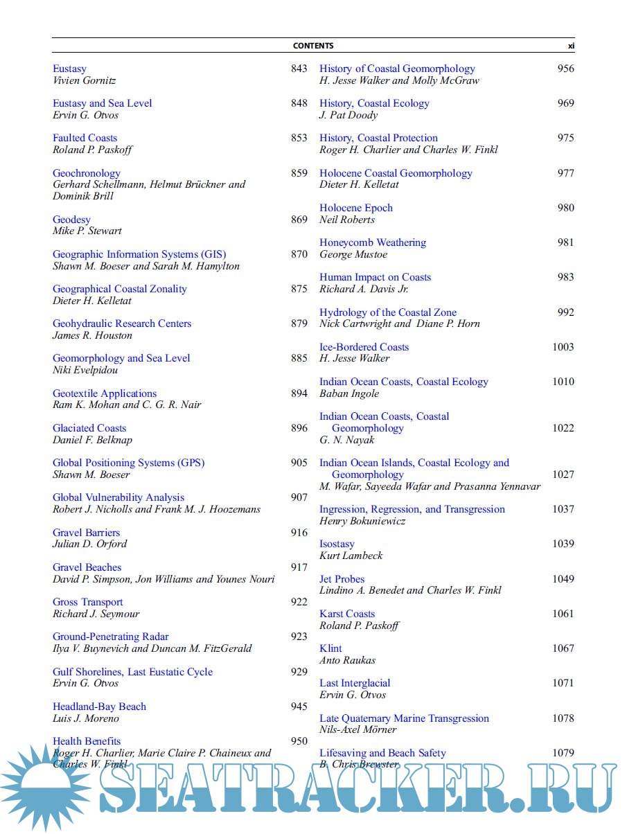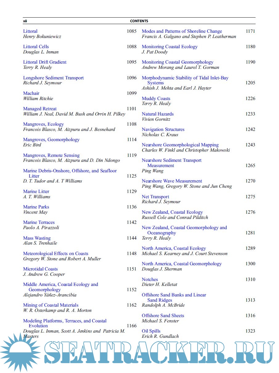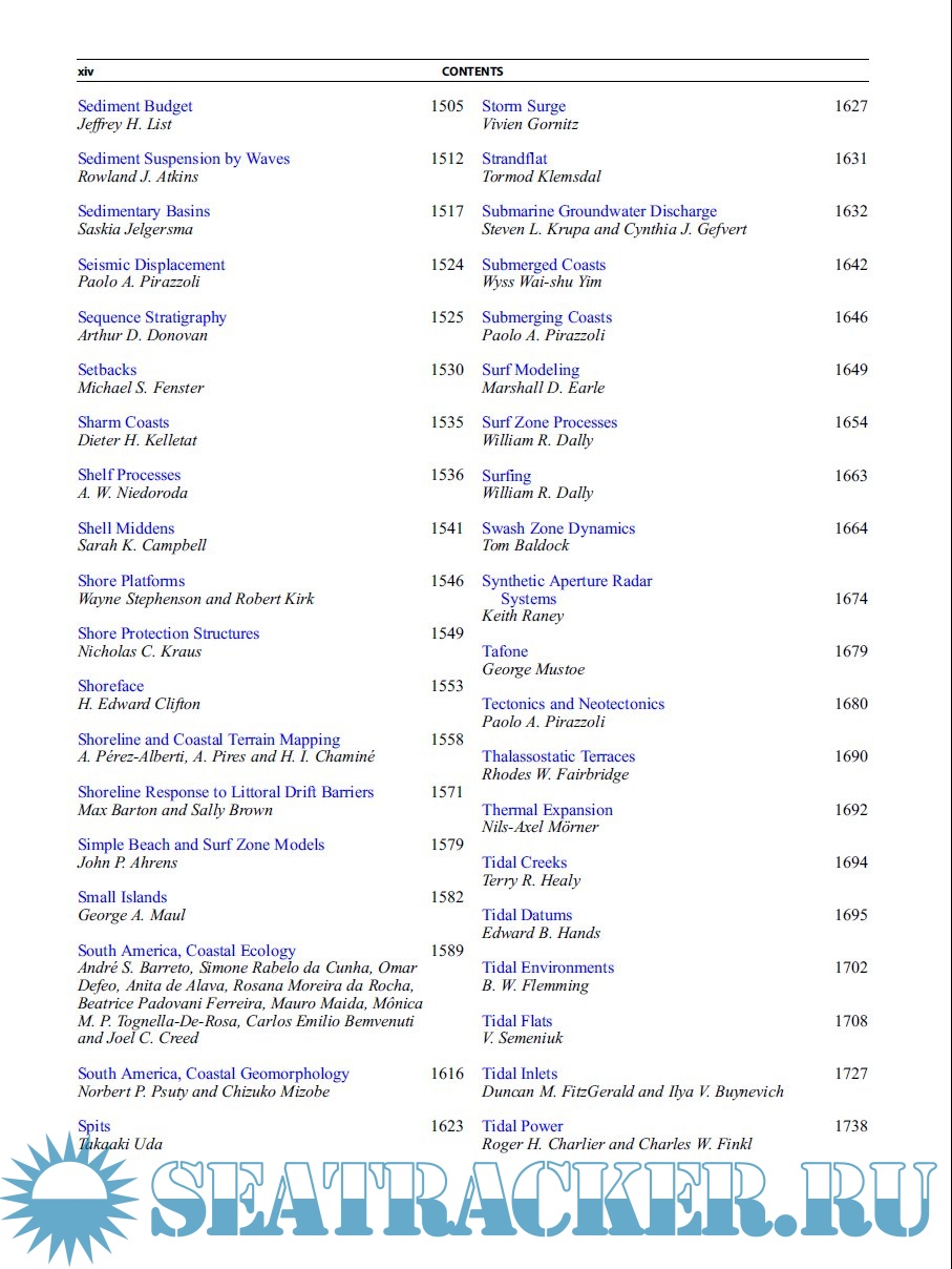 Year: 2019 Language: english Author: Various authors Genre: Encyclopedia Publisher: Springer Edition: 2nd ISBN: 978-3-319-93805-9 Format: PDF Quality: eBook Pages count: > 2000 Description: About 45% of the world’s population lives within 150 km of the coast, and coastal zone comprises about 20% of the Earth’s surface. This complex region, which functions as the interface between land and water, is studied from the point of view of the sea, land and estuaries. The approach must necessarily be multidisciplinary, as concepts, principles, and practices are often overlapped and interlaced. This volume, organized by alphabetical entries, deals with all aspects of processes, features, and areas in what is commonly referred to as the “coastal zone.” Experts from various sciences deal, in a series of essays, with atmosphere and oceanography, ecology, engineering and technology, geomorphology, climate change, erosion processes, and human activities, among others. Additional info: Editors: Charles W. Finkl, Christopher Makowski
