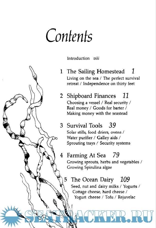 Description: Sets out to equip the sailor with the information needed to turn a boat into a survival retreat. Topics covered include - Gather and preparing edible seaweeds; Earning a living with your boat; Delicious no-fuel recipes; Survival tools; Long-term food storage; Vegetable gardening; Fully illustrated with diagrams and sketches.
