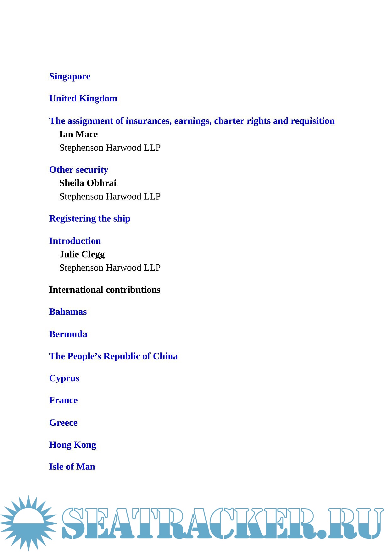 In addition, Shipping Finance provides an extensive discussion of the procedure and documentation for registering ships on a country-by-country basis, with detailed advice from local experts.